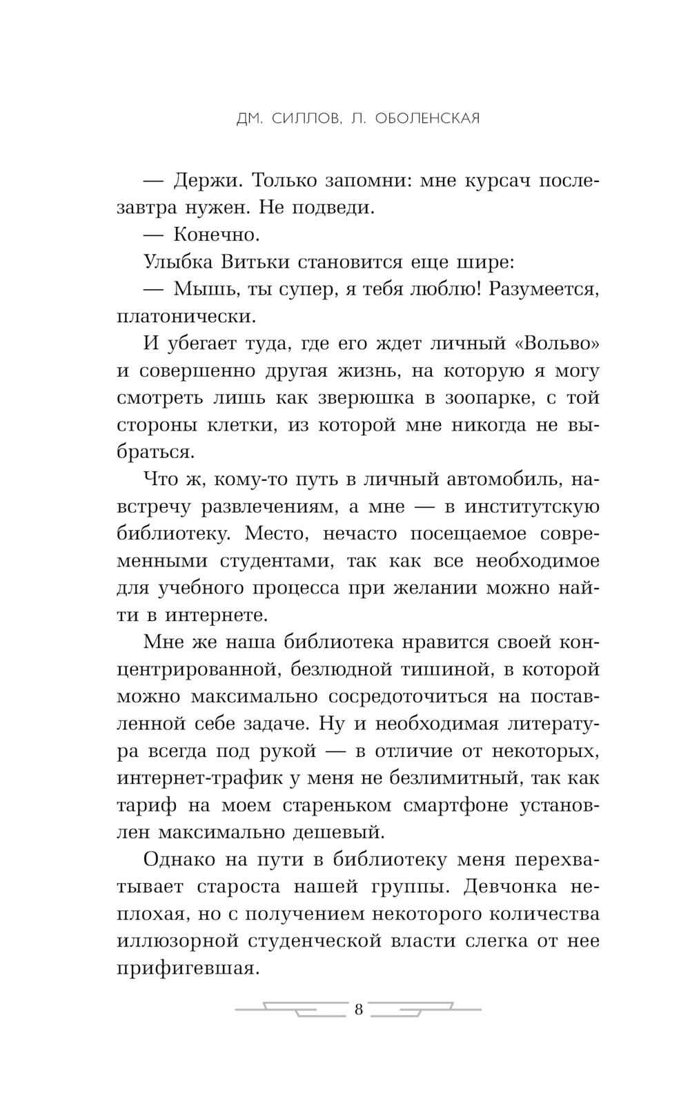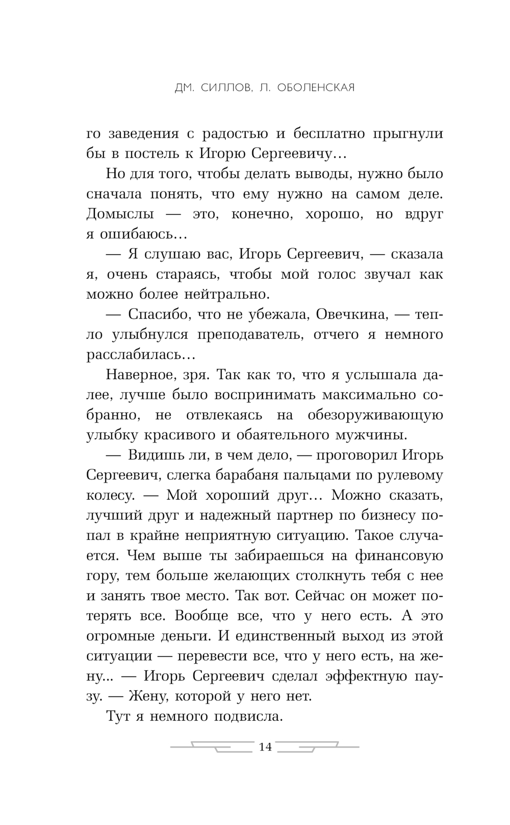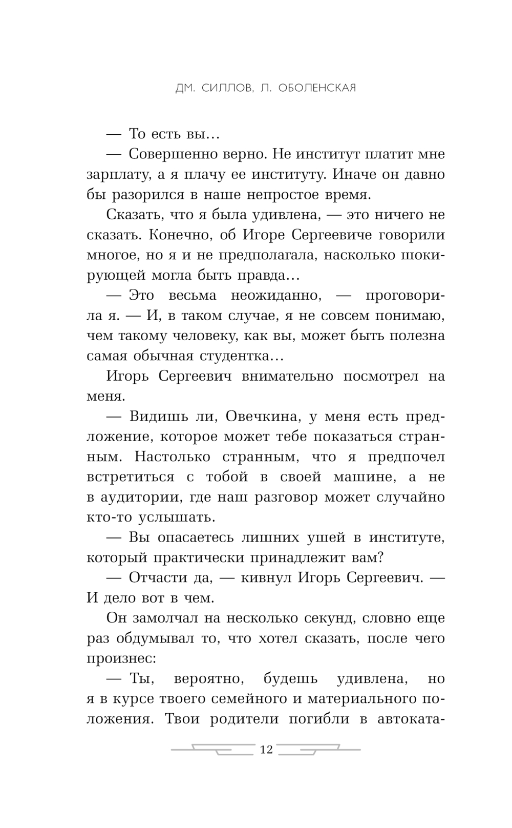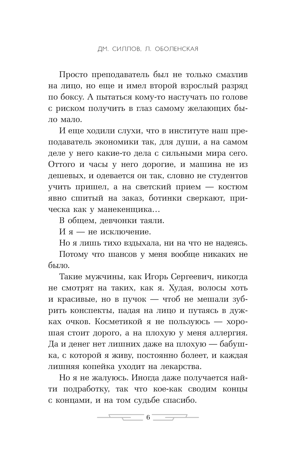 Один из соавторов этого творческого тандема, писатель Дмитрий Силлов, является автором четырех десятков бестселлеров для настоящих мужчин и идеалом защитника даже для сильных женщин. Работа в дуэте с Любовью Оболенской привнесла в их совместные романы пронзительную лирическую нотку.