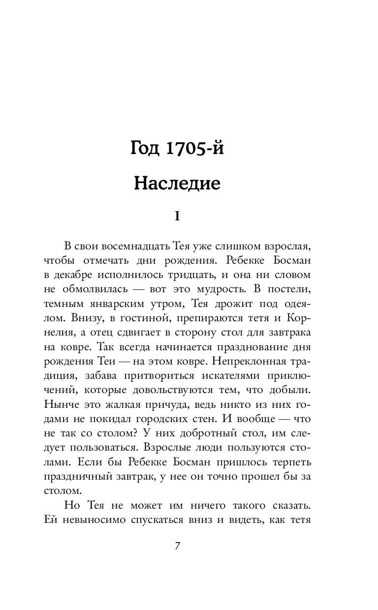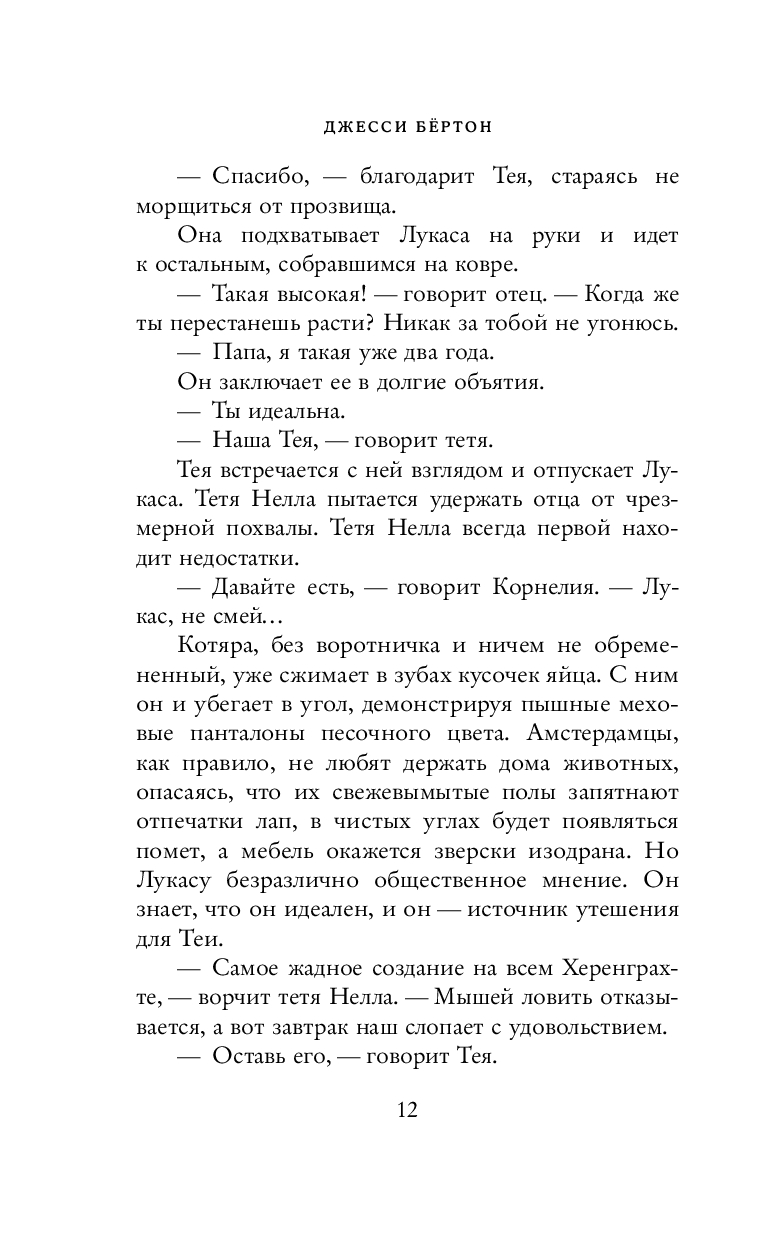 Амстердам, 1705 год. Тее Брандт скоро исполнится восемнадцать, и она с нетерпением ждет, когда станет взрослой. Но дома на Херенграхт все очень сложно. Ее отец Отто и тетя Нелла беспрестанно препираются и продают мебель, чтобы семья могла выжить.