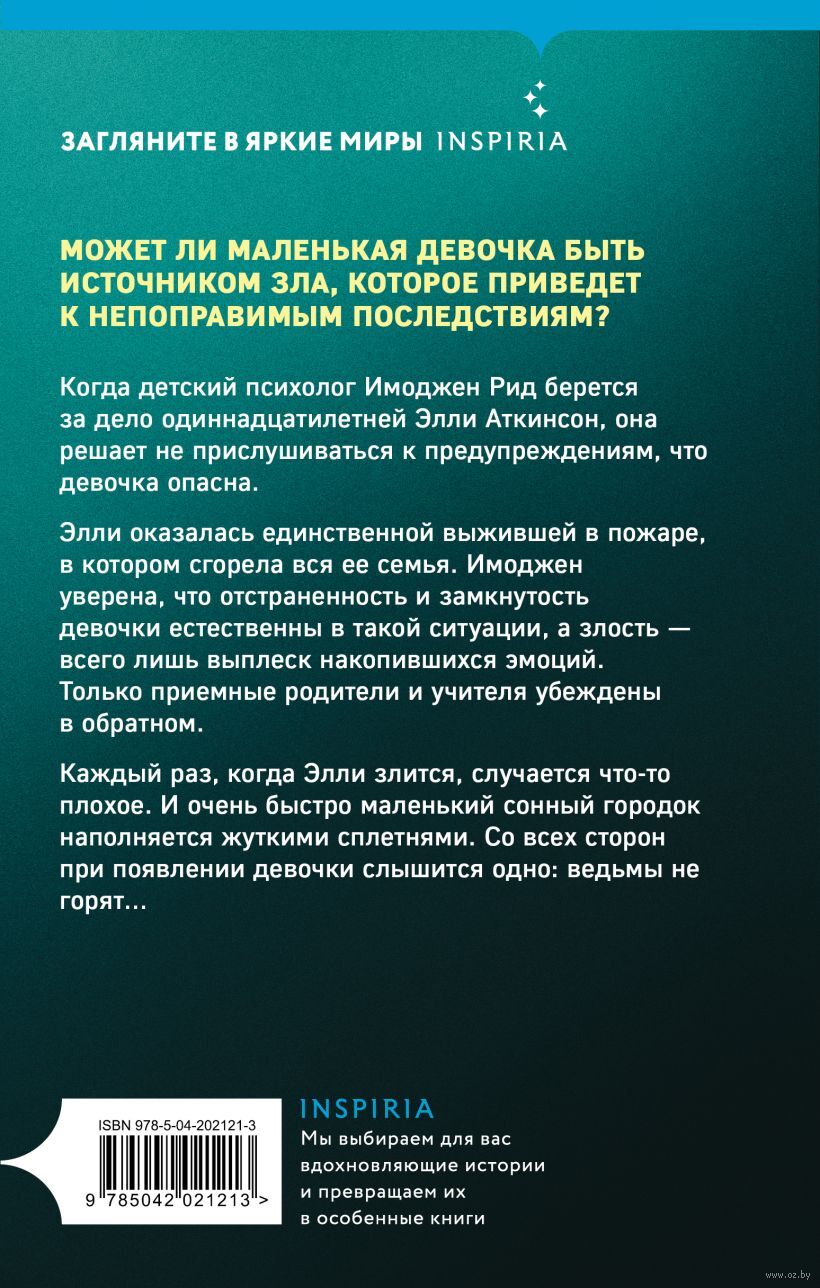 Только приемные родители и учителя убеждены в обратном. Каждый раз, когда Элли злится, случается что-то плохое. И очень быстро маленький сонный городок наполняется жуткими сплетнями. Со всех сторон при появлении девочки слышится одно: Ведьмы не горят...