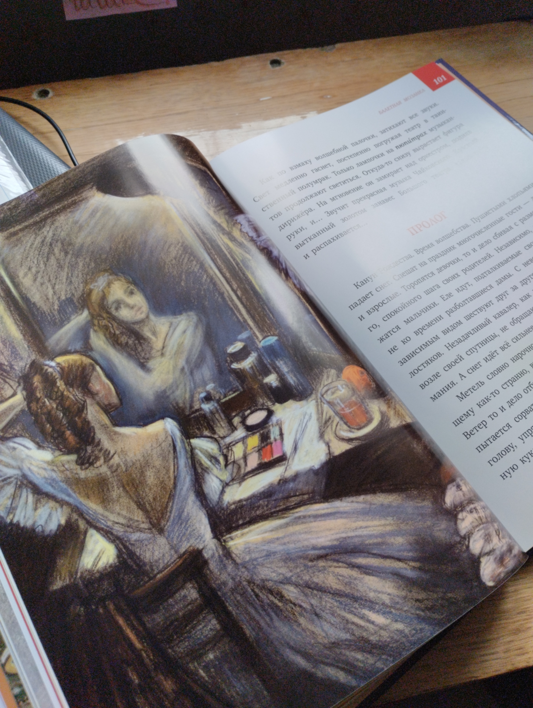 Чудесная книга. Очень яркая, потрясающие иллюстрации к каждой мысли книги. Крупный шрифт. Глянцевая бумага (я не поклонница, но в книге такого формата и содержания это оправдано). Написана лёгким языком, но в то же время богатым. Будет понятна детям и взрослым. Погружение в историю танца, появления театра, своеобразная экскурсия в закулисье большого театра, и самого балета "Щелкунчик". Очень понравилось, как автор уважительно описывают "невидимую" для зрителей работу декораторов, постижеров, рассказывает о том, как рождается спектакль от идеи до воплощения на сцене. В конце книге есть глоссарий и алфавитный указатель. Сама книга разбита на действия, как спектакль. Такое построение может показаться слишком научным, но именно четкая структура позволяет проследить мысль и логику повествования - историю балета в целом и конкретной постановки в частности. Получила огромное удовольствие. Здорово иметь такую книгу в домашней библиотеке.