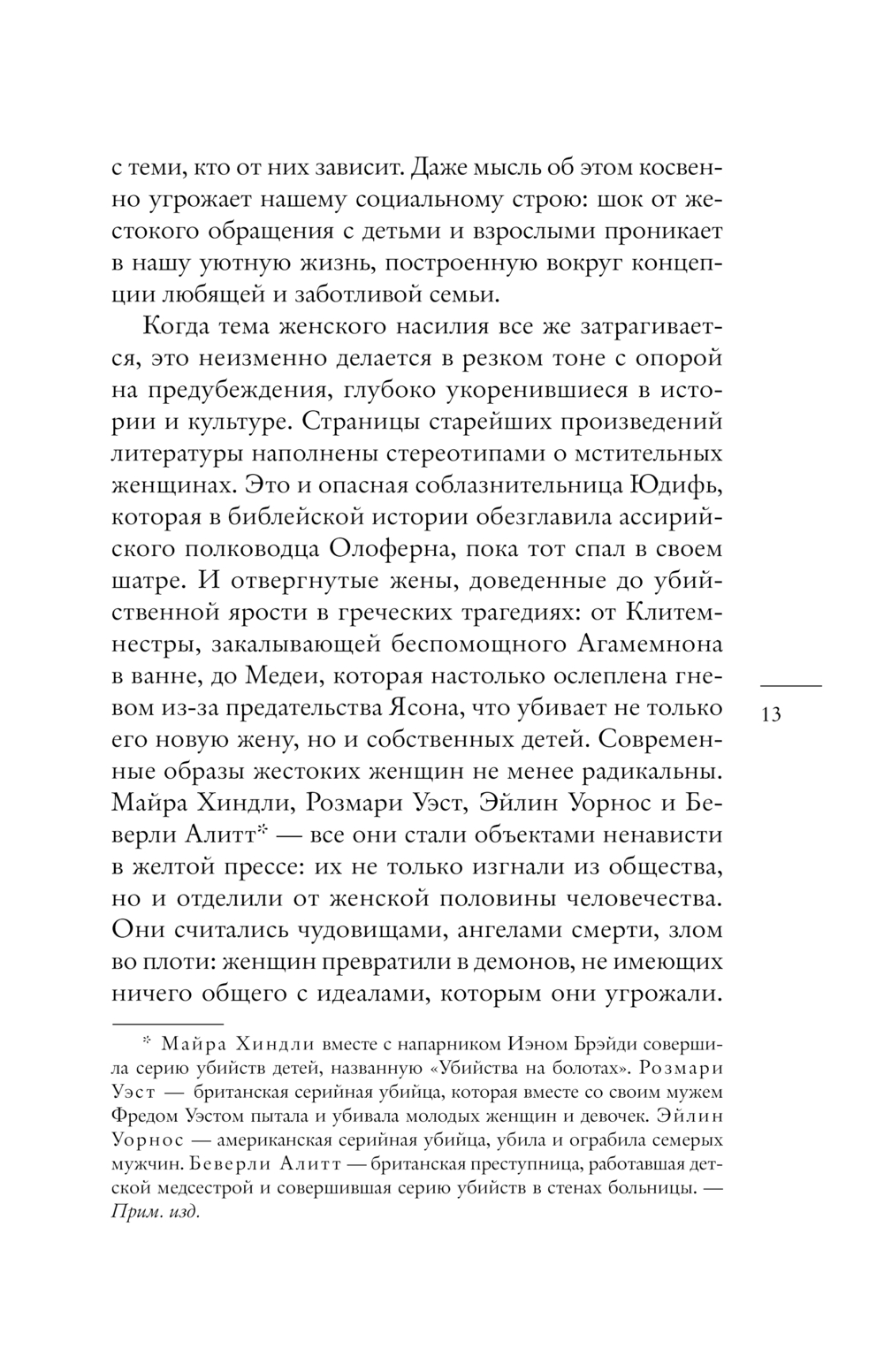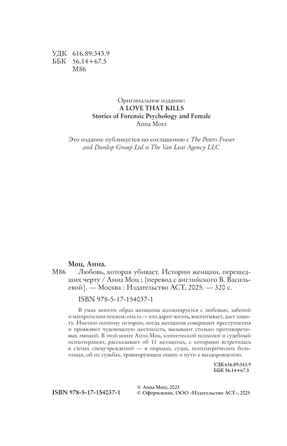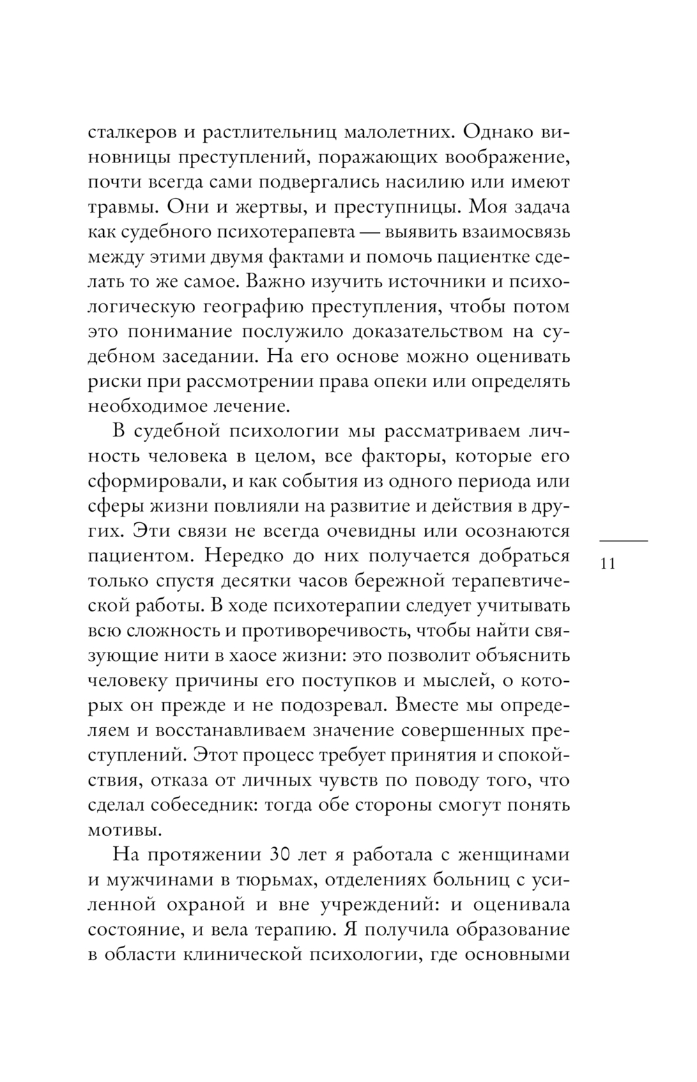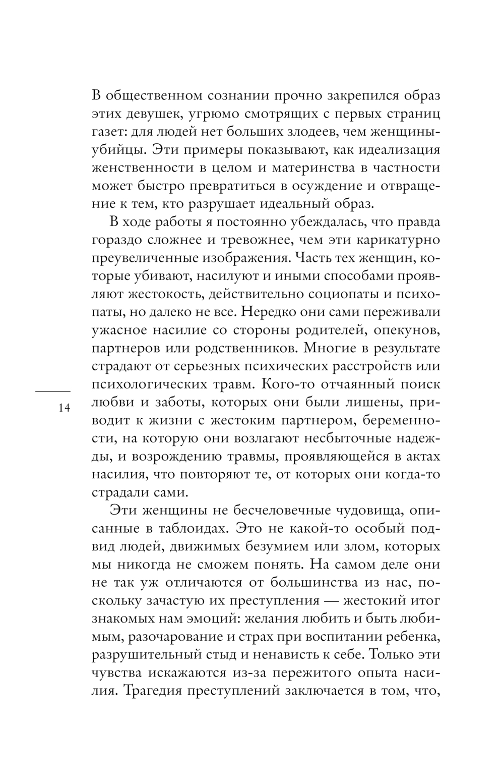 В умах многих образ женщины ассоциируется с любовью, заботой и материнским теплом; она та – кто дарит жизнь, воспитывает, дает защиту. Именно поэтому истории, когда женщины совершают преступления и проявляют чудовищную жестокость, вызывают столько противоречивых эмоций. В этой книге Анна Моц, клинический психолог и судебный психотерапевт, рассказывает об 11 женщинах, с которыми встретилась в стенах спецучреждений – в тюрьмах, судах, психиатрических больницах, об их судьбах, травмирующем опыте и пути к выздоровлению.