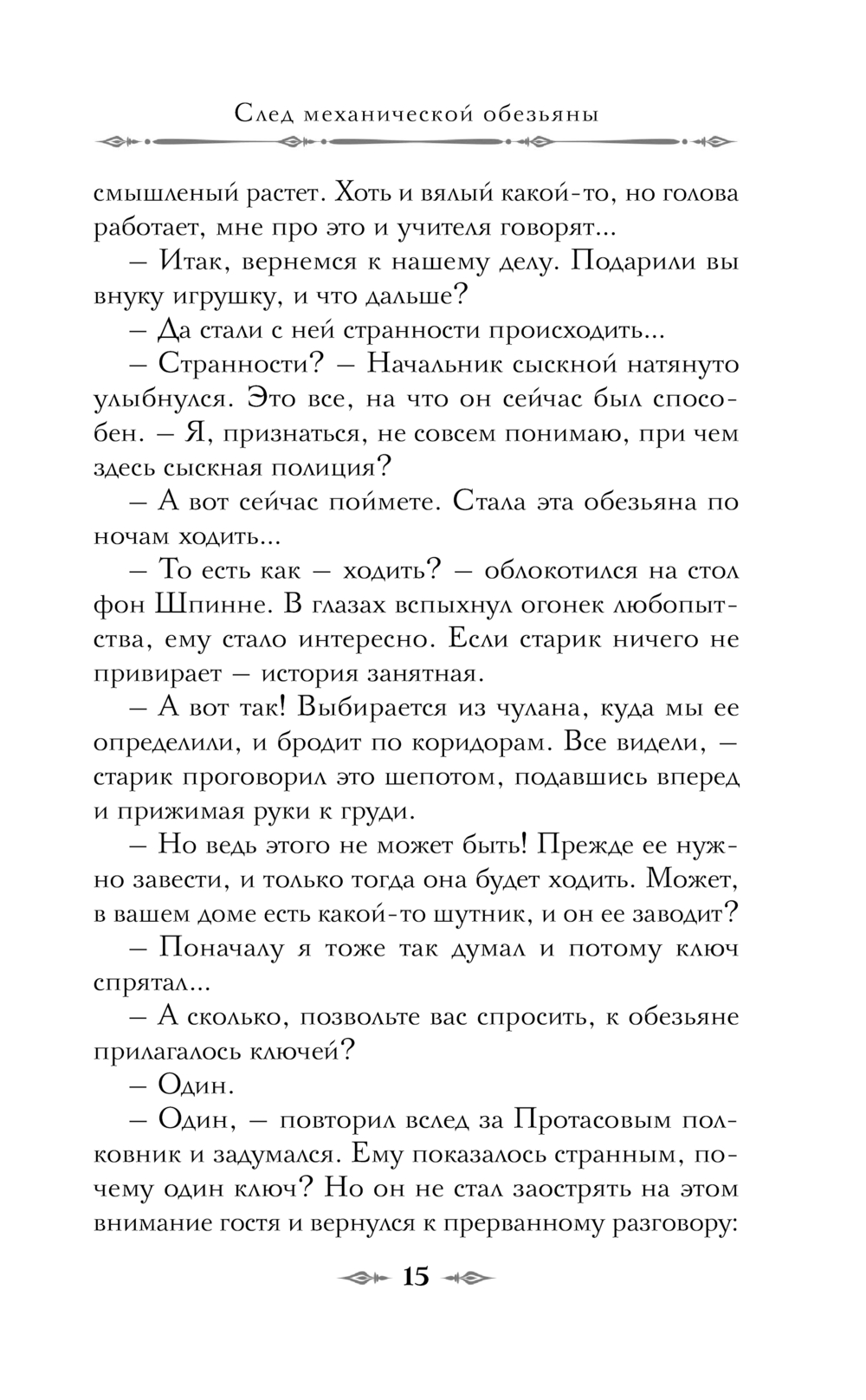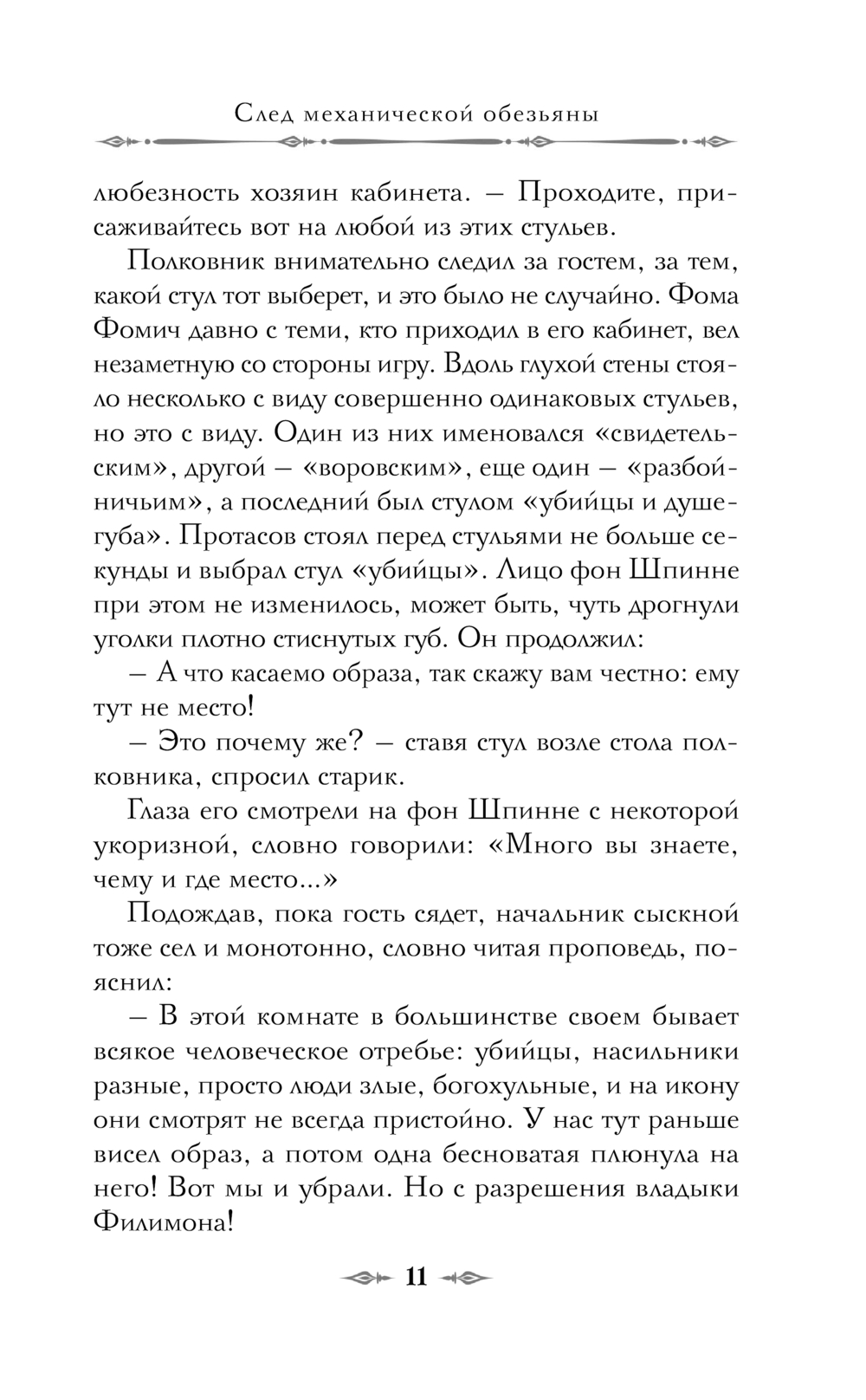 В Татаяре вместе с хорошей погодой установилось затишье, ни преступлений, ни происшествий. Но однажды к заскучавшему полковнику фон Шпинне обращается фабрикант Протасов, первый татаярский миллионер. По его словам, в доме происходит чертовщина: якобы механическая игрушка, обезьяна в человеческий рост, которая умеет ходить и говорить, сама выбирается из чулана и бродит по дому. Миллионер боится, что рано или поздно она кого-нибудь убьет и просит Фому Фомича погостить у него несколько дней...