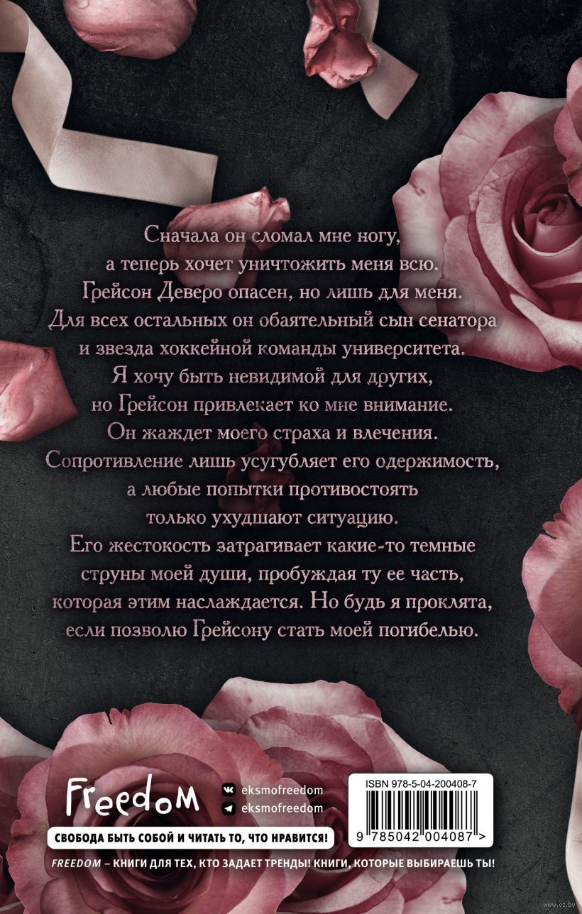 Грейсон Деверо опасен, но лишь для меня. Для всех остальных он обаятельный сын сенатора и звезда хоккейной команды университета. Я хочу быть невидимой для других, но Грейсон привлекает ко мне внимание. Он жаждет моего страха и влечения. Сопротивление лишь усугубляет его одержимость, а любые попытки противостоять только ухудшают ситуацию. Его жестокость затрагивает какие-то темные струны моей души, пробуждая ту ее часть, которая этим наслаждается. Но будь я проклята, если позволю Грейсону стать моей погибелью.