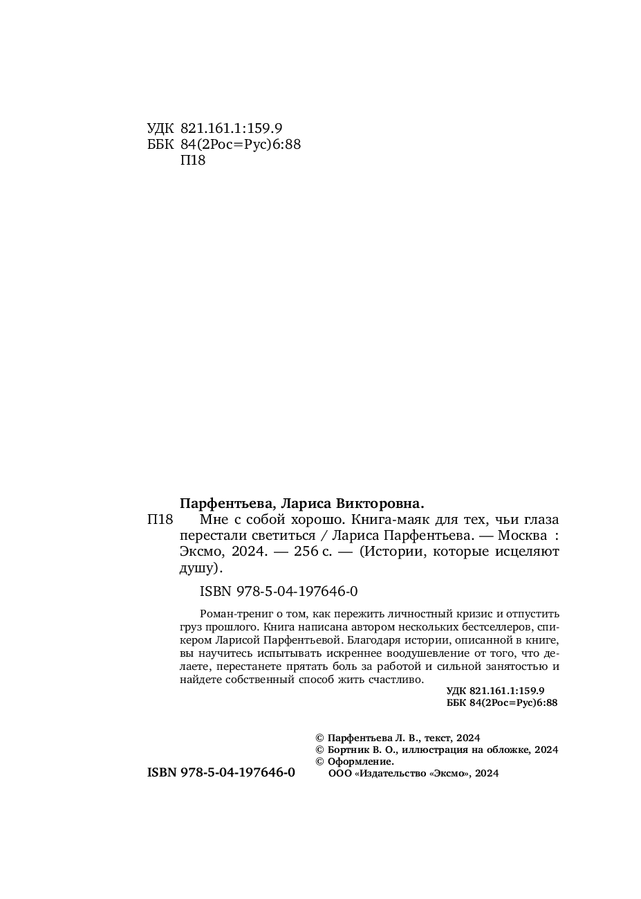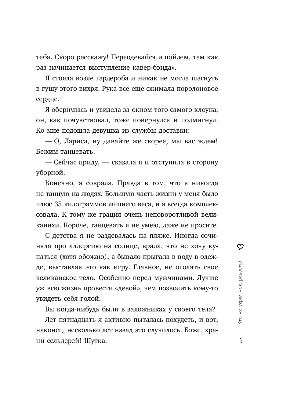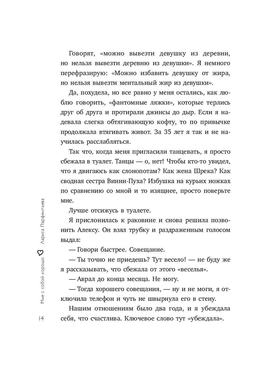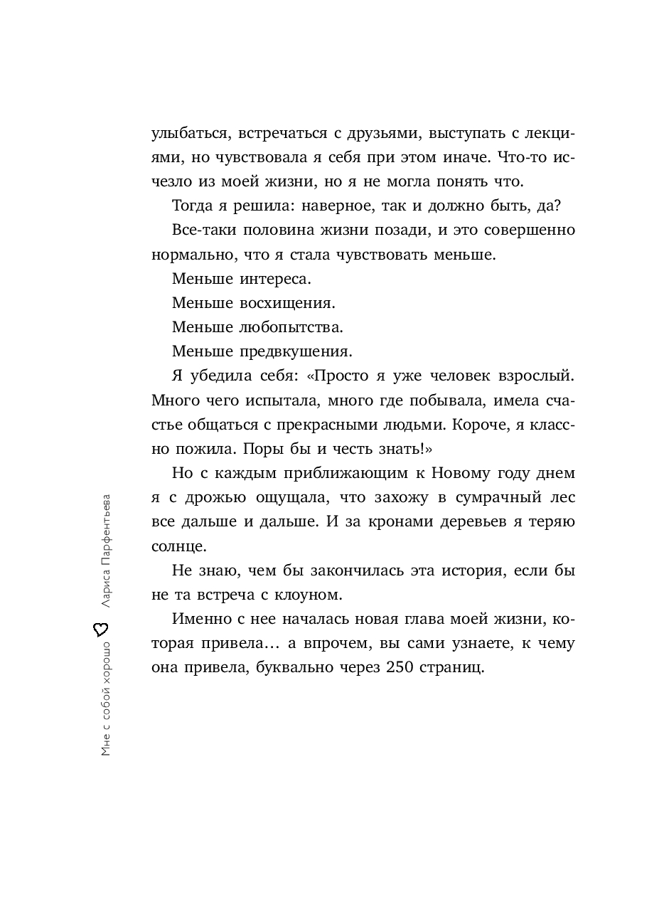 Роман-трениг о том, как пережить личностный кризис и отпустить груз прошлого. Книга написана автором нескольких бестселлеров, спикером Ларисой Парфентьевой. Благодаря истории, описанной в книге, вы научитесь испытывать искреннее воодушевление от того, что делаете, перестанете прятать боль за работой и сильной занятостью и найдете собственный способ жить счастливо.