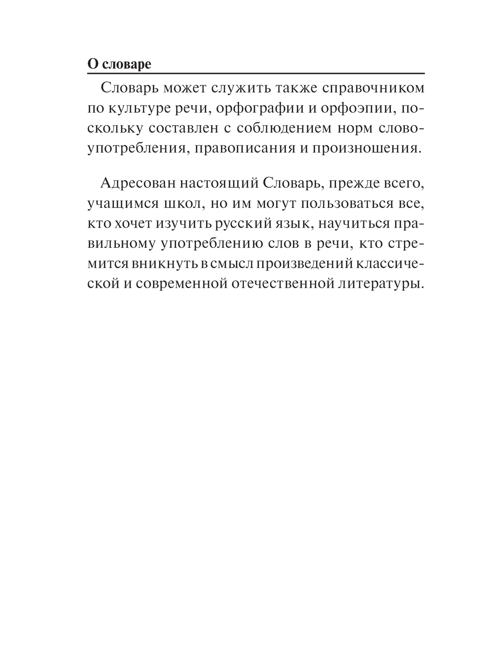 В этом словаре собраны толкования более 3000 слов и устойчивых сочетаний, составляющих необходимый минимум для школьников. Помимо толкований приводятся грамматические характеристики, примеры употребления и фразеологические выражения. Издание будет полезно всем, кто интересуется русским языком и хочет совершенствовать свою речь. Словарь составлен с соблюдением норм словоупотребления, правописания и произношения, поэтому он может служить справочником по культуре речи.