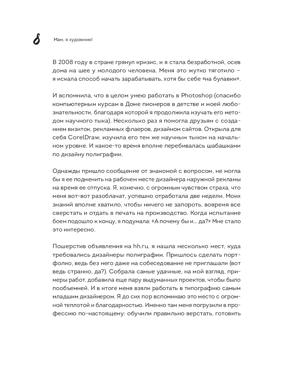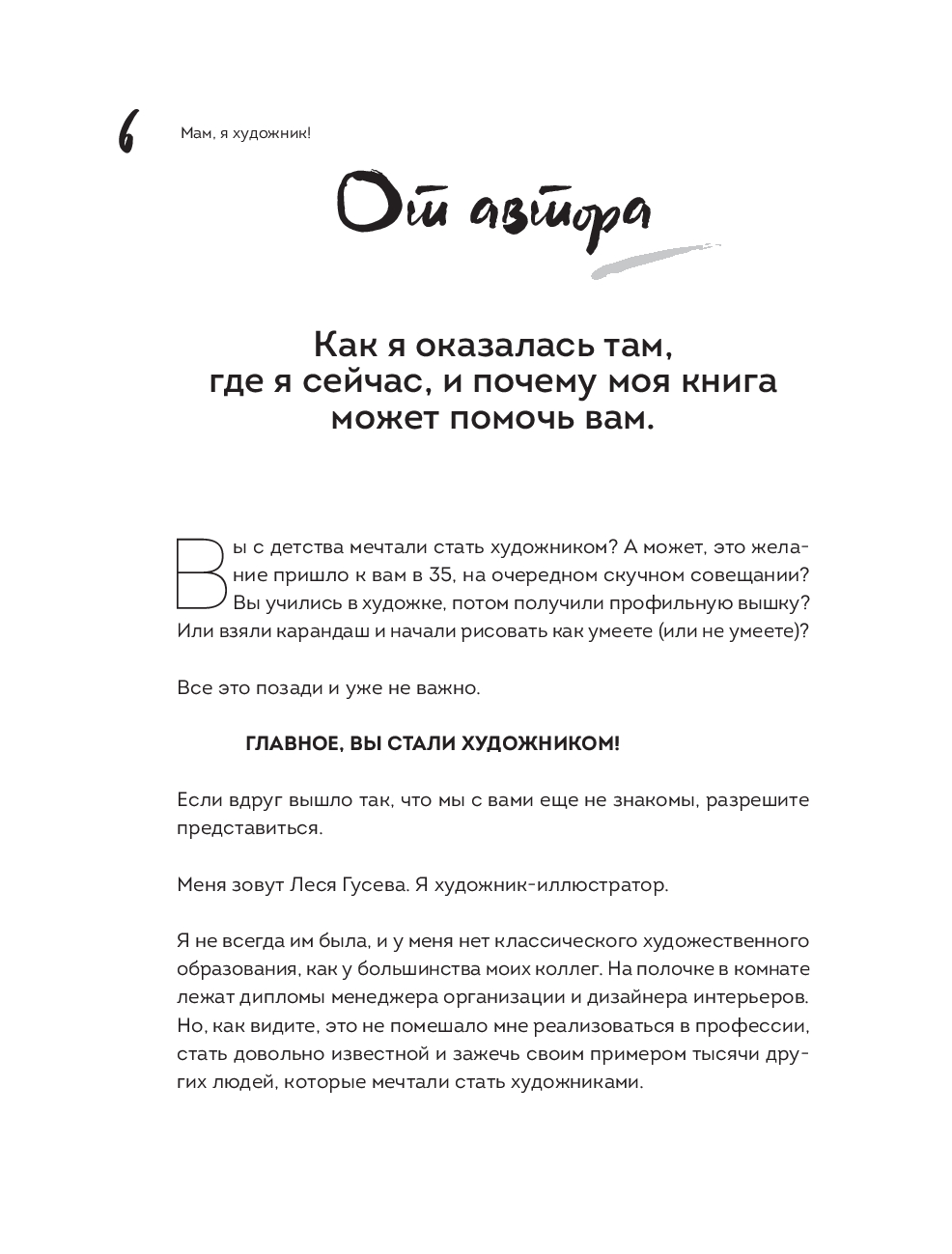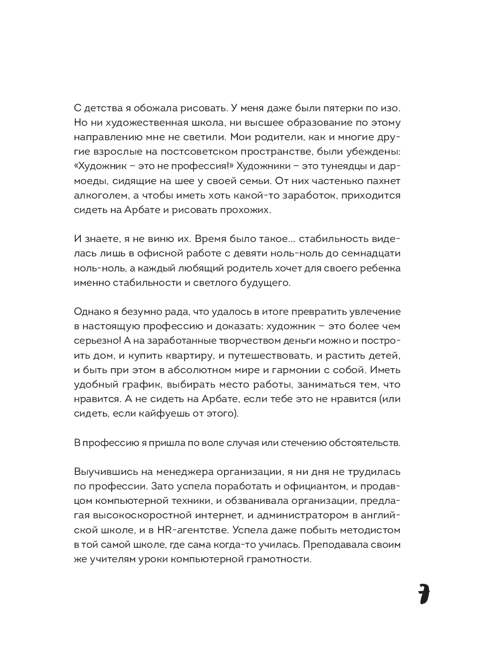 В этой книге известный художник-иллюстратор Леся Гусева решила разобрать все вопросы, с которыми сталкиваются художники, дизайнеры и иллюстраторы. Вместе с ней вы поймете, кто вообще такой художник, чем он может заниматься, где он ищет заказчиков и проекты, как составляет грамотное продающее портфолио и создает личный бренд. Кроме того, вы разберете не менее важные проблемы: выгорания, поиска себя и своей цели в карьере.