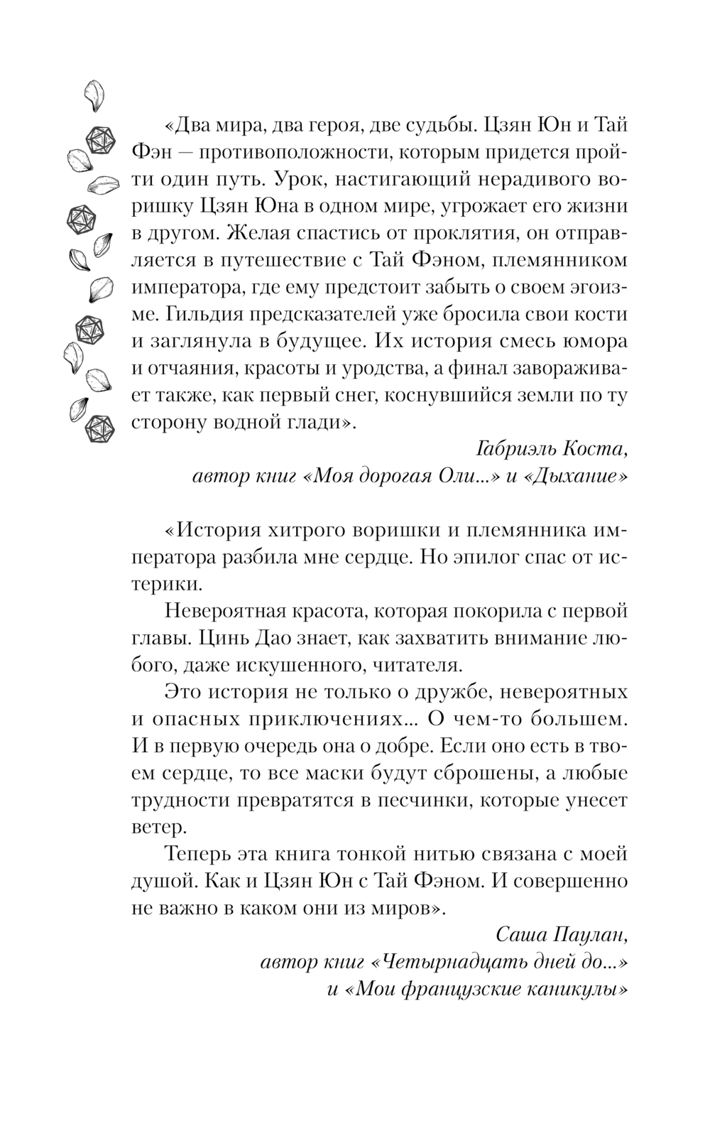 К несчастью, его единственным проводником по древним землям становится холодный и отстраненный Тай Фэн, молодой мастер гильдии Предсказателей, да еще и племянник самого императора.