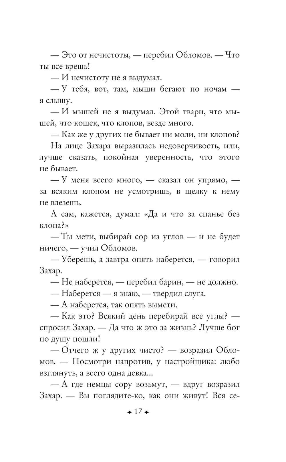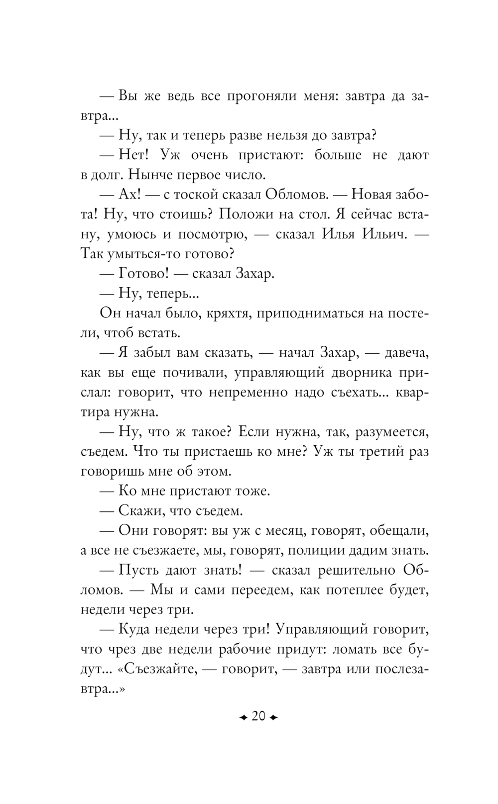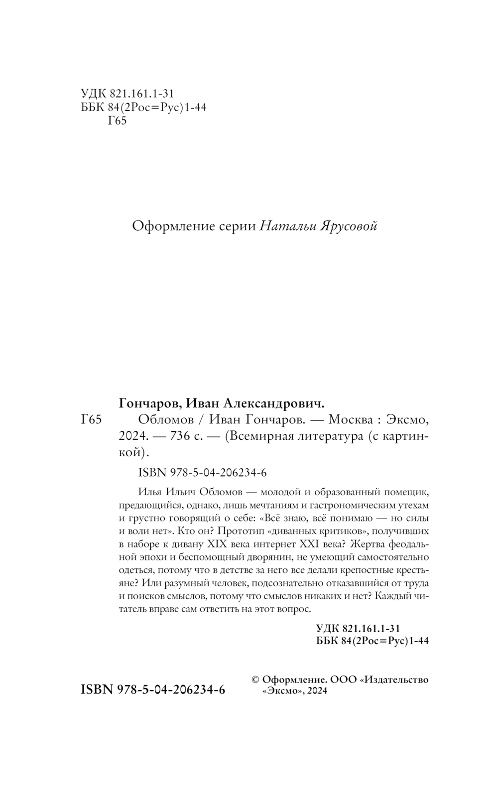 Илья Ильич Обломов – молодой и образованный помещик, предающийся, однако, лишь мечтаниям и гастрономическим утехам и грустно говорящий о себе: "Всё знаю, всё понимаю – но силы и воли нет". Кто он? Прототип "диванных критиков", получивших в наборе к дивану XIX века интернет XXI века? Жертва феодальной эпохи и беспомощный дворянин, не умеющий самостоятельно одеться, потому что в детстве за него все делали крепостные крестьяне? Или разумный человек, подсознательно отказавшийся от труда и поисков смыслов, потому что смыслов никаких и нет? Каждый читатель вправе сам ответить на этот вопрос.