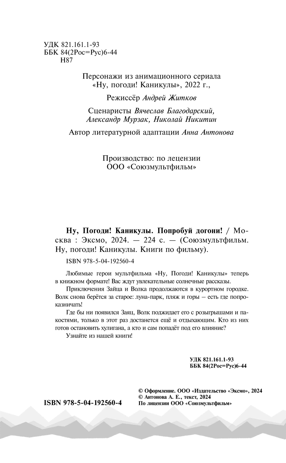 Новая встреча с героями популярного мультсериала "Ну, погоди! Каникулы" от студии "Союзмультфильм" в книжном формате! Вас ждет увлекательный сюжет и множество ярких впечатлений!