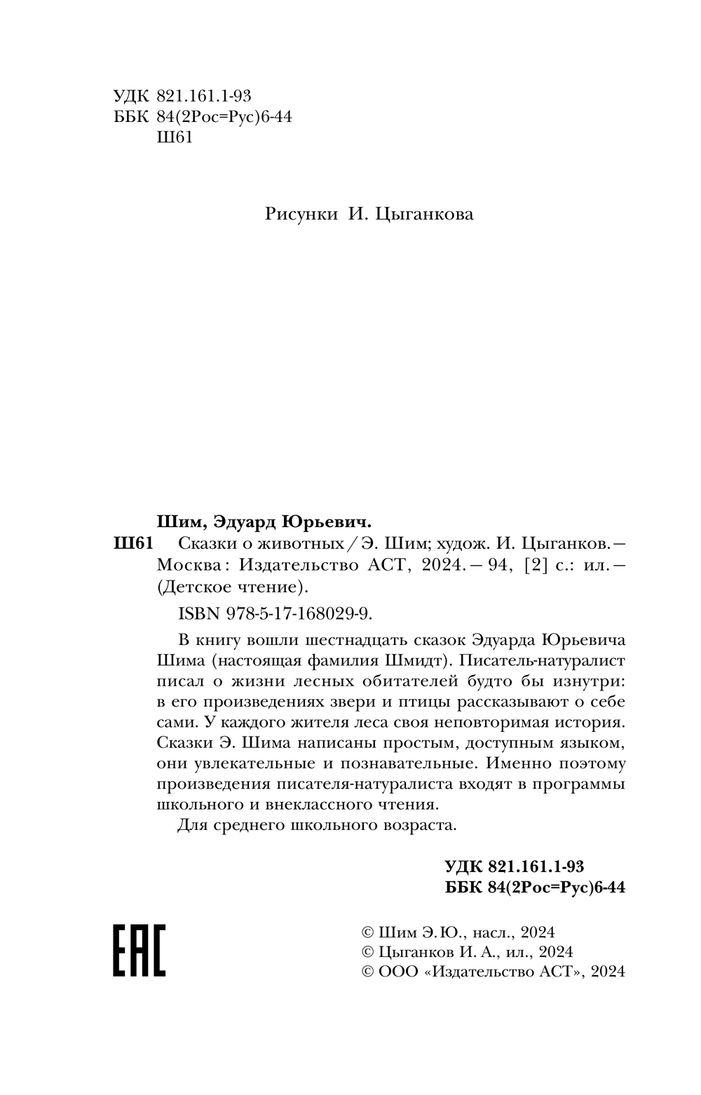 В книгу вошли шестнадцать сказок Эдуарда Юрьевича Шима (настоящая фамилия Шмидт). Писатель-натуралист писал о жизни лесных обитателей будто бы изнутри: в его произведениях звери и птицы рассказывают о себе сами. У каждого жителя леса своя неповторимая история.