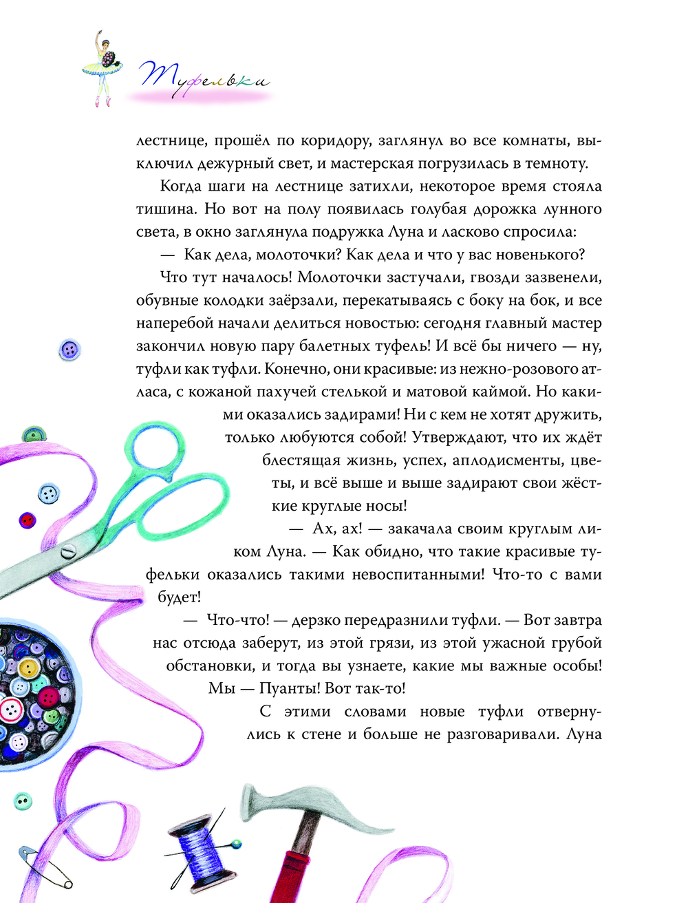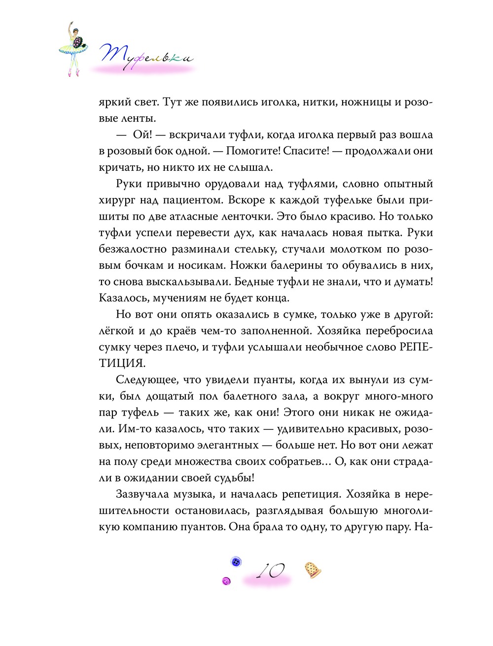 В книгу вошли следующие сказки: Туфельки; Лягушка Балерушка; Когда ложи поспорили; Горячее сердце; Бабушкина сказка; Война котов и машин; Как Юбочка влюбилась в Колет; Мышь-критикан; Булочки.