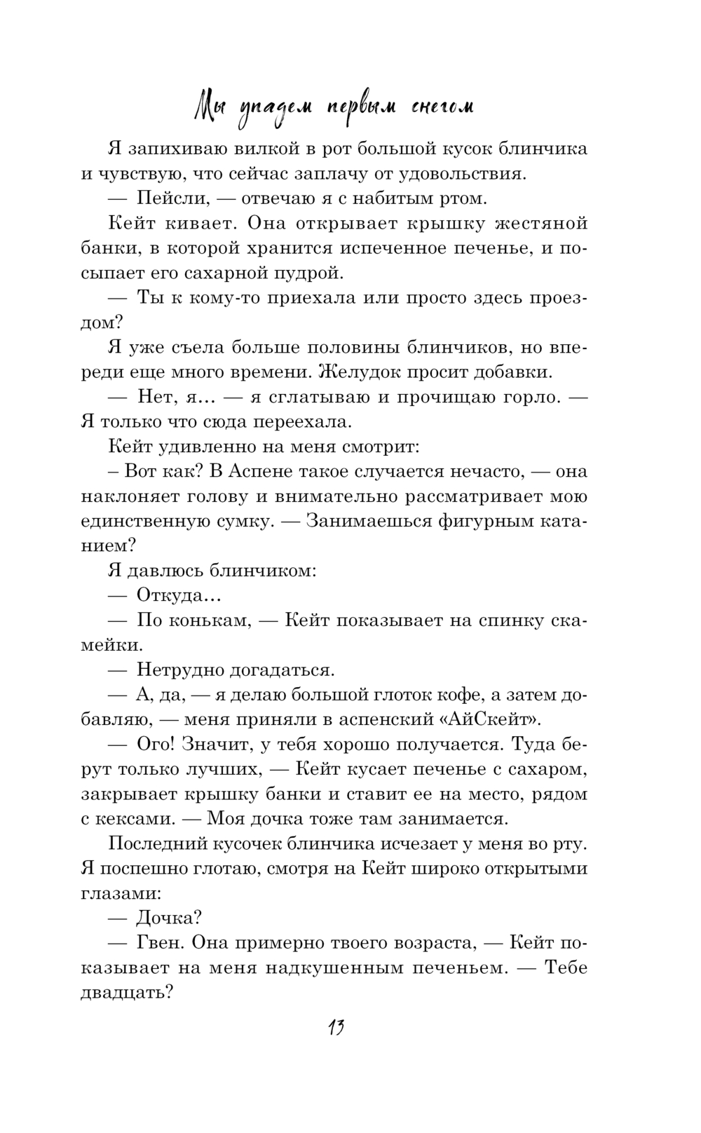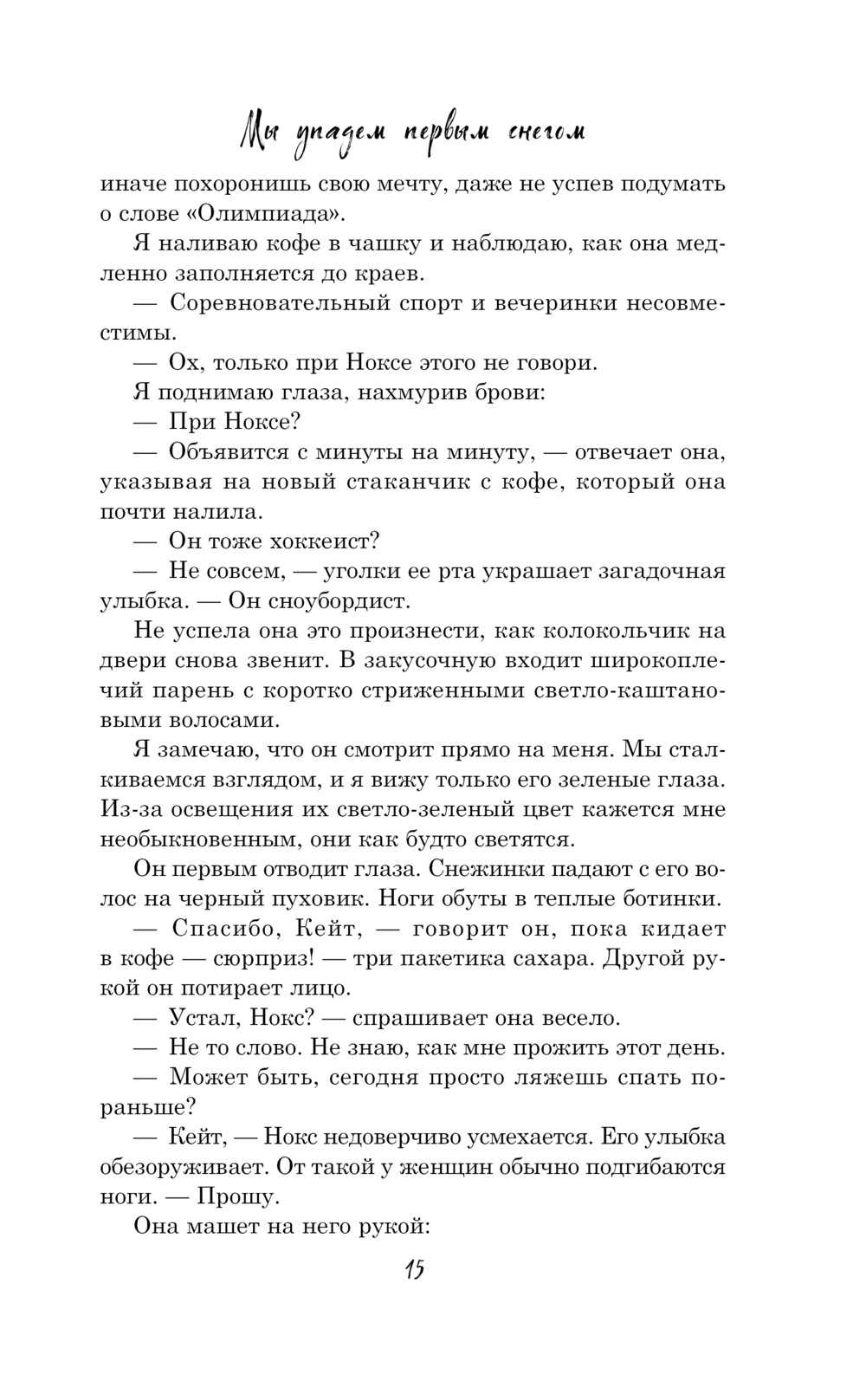 Когда Пейсли приезжает в заснеженный Аспен, не имея ничего, кроме коньков, от очаровательной зимней страны чудес у нее перехватывает дыхание. Когда девушка видит Серебряное озеро, покрытое сверкающим слоем льда, на фоне величественных Скалистых гор, она на мгновение забывает, что бежит от своей старой жизни. Отныне для нее важно только будущее: талантливая фигуристка соглашается на должность тренера в самой престижной школе Аспена и втайне мечтает об Олимпийских играх. На пути к вершине она ни при каких обстоятельствах не может позволить себе отвлечься, особенно на эгоцентричного сноубордиста Нокса.