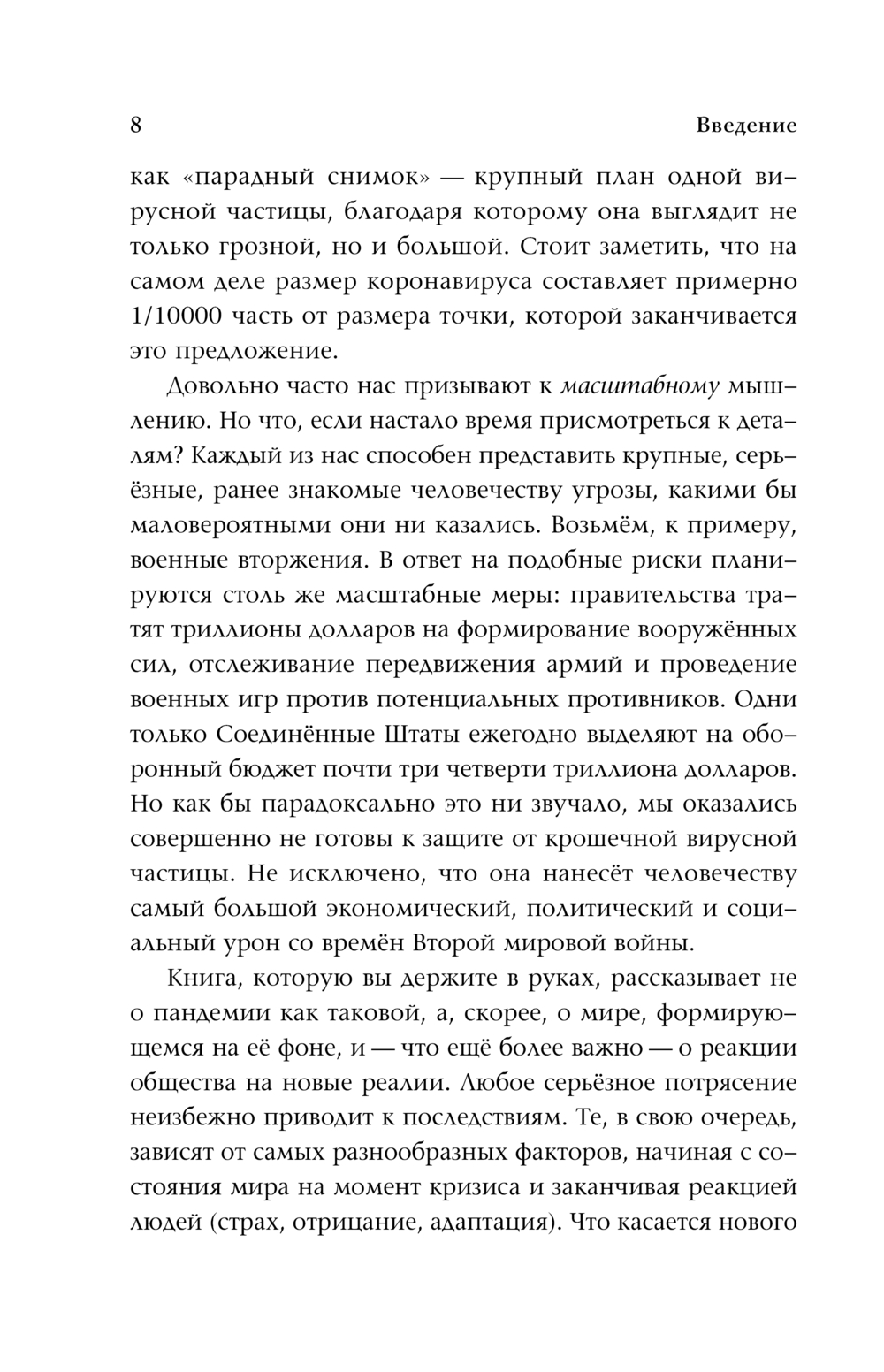 В книге "Эффект летучей мыши: 10 уроков по современному мироустройству помимо черных лебедей" рассказывается о мире, который формируется в условиях кризиса, пандемий и других угроз, и – что ещё более важно – об общественной реакции на эти новые реалии. Критические ситуации дают нам возможность для перемен и реформ. И нам решать, воспользоваться ли этой возможностью или упустить её. Однако политические, социальные, технологические и экономические уроки необходимо усвоить прямо сейчас.