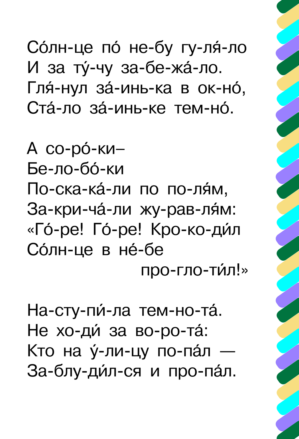 Ваш малыш уже знает буквы и его ручки тянутся к книжкам? Покажите ему серию "Сам читаю по слогам". Это книжки небольшого формата, с большими буквами, и все слова разбиты на слоги с ударениями. В этой серии собраны лучшие произведения современных авторов и классиков детской литературы – С. Маршака, С. Михалкова, Э. Успенского, Г. Остера, В. Сутеева и других знаменитых писателей и поэтов. Каждую книгу маленькие мальчики и девочки смогут прочитать САМИ от начала и до конца. А потом будут гордо говорить: "Вот мои первые прочитанные книжки. Хочу читать ещё!" В этой книге малыши прочитают увлекательную сказку знаменитого детского писателя К. Чуковского "Краденое солнце".