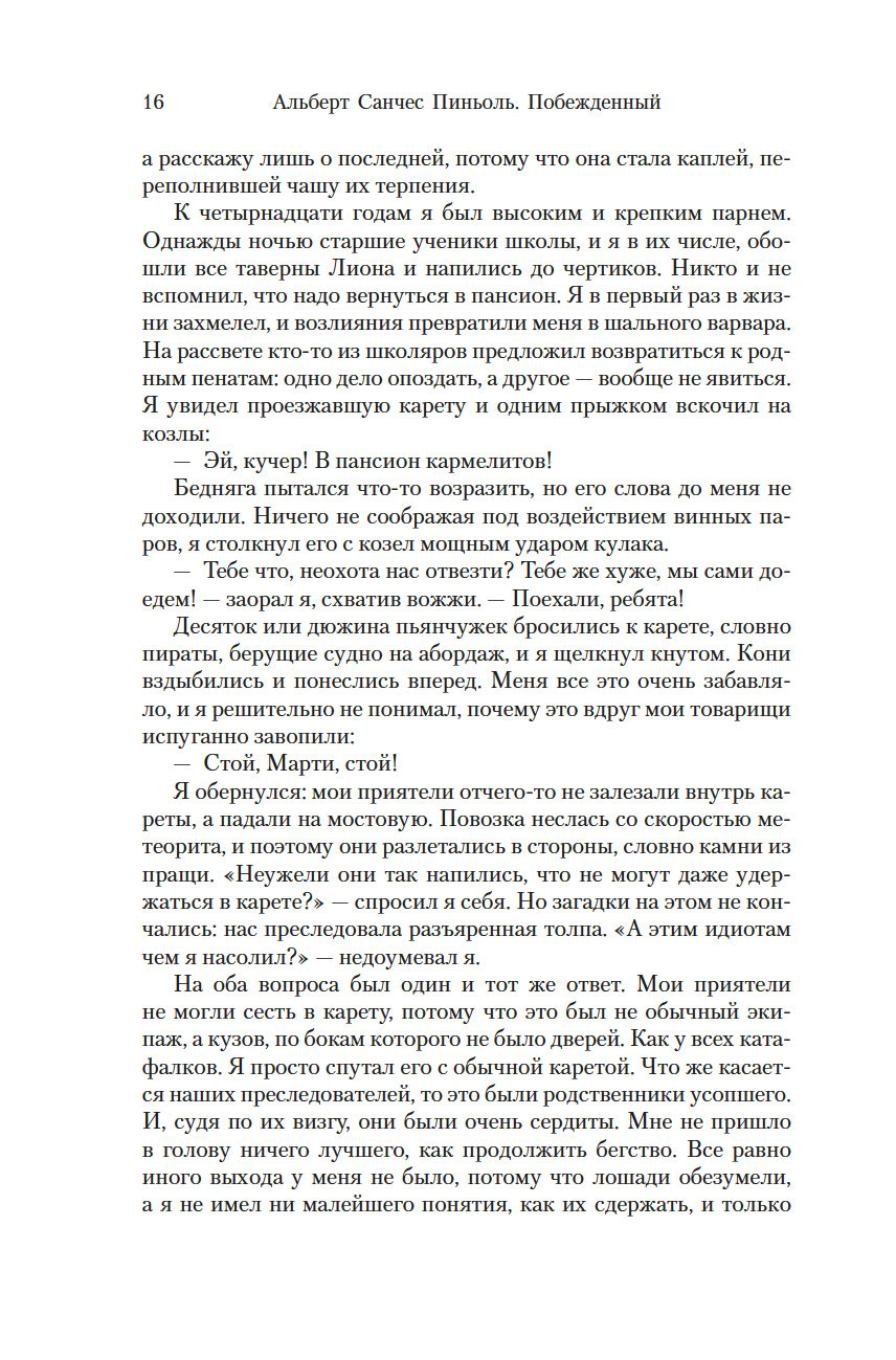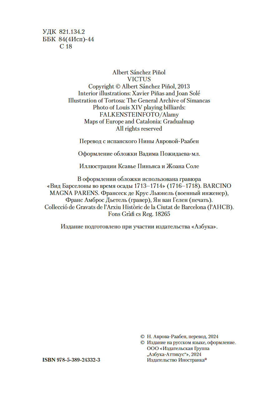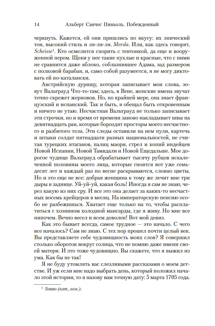 Альберт Санчес Пиньоль – одна из крупнейших звезд каталанской литературы; оригинальностью и популярностью он не уступает Жауме Кабре. Его "Побежденный", авантюрный роман, военный эпик и высокая трагедия, отчасти отсылает нас к "Симплициссимусу" Гриммельсгаузена и "Похождениям бравого солдата Швейка" Ярослава Гашека, "Дуэли" Джозефа Конрада и "Запискам Флэшмена" Джорджа Макдоналда Фрейзера, которыми автор особенно вдохновлялся. В Испании роман разошелся тиражом более 250 тысяч экземпляров, был переведен на 16 языков, вызвал безудержные восторги, спровоцировал яростные споры, получил премию газеты El Periódico за лучший роман 2012 года, стал основой для комикса и вдобавок вдохновил серию концертов барочной музыки (а такое с современными романами случается редко). В "Побежденном" будут героизм и трусость, стойкость и разгром, бесплодные поиски и ослепительные откровения, язвительная усмешка и безмолвная нежность. Любая война способна только убивать и калечить, а в качестве запоздалого и решительно несоразмерного утешения разве что подарить нам "Войну и мир", и "Побежденный" – это "Война и мир" Барселоны.