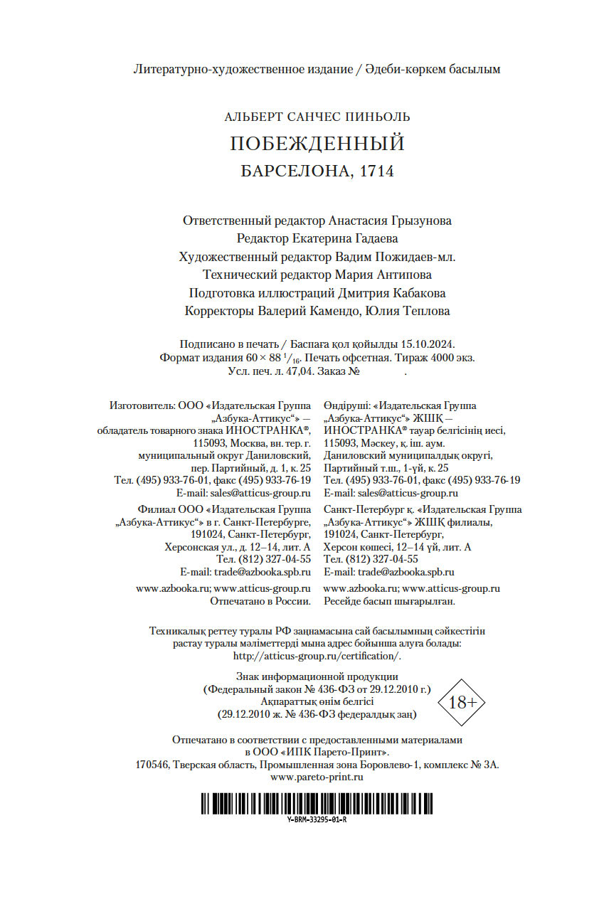 | Изготовитель | ООО "Издательство "Иностранка". 109017, РФ, г. Москва, ул. Пятницкая, 41 |
