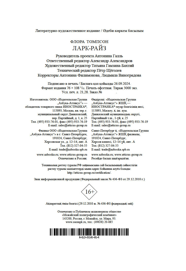 | Изготовитель | ООО "Издательство "Иностранка". 109017, РФ, г. Москва, ул. Пятницкая, 41 |