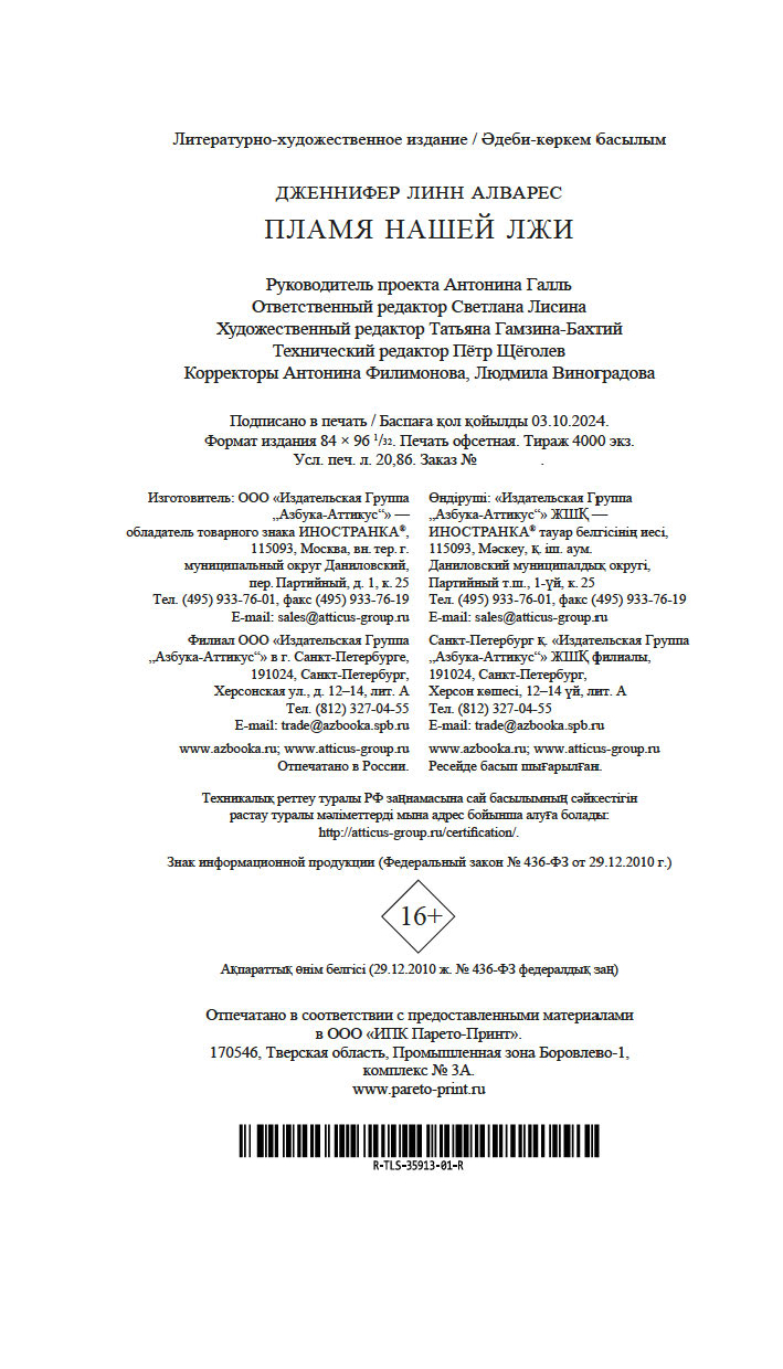| Изготовитель | ООО "Издательство "Иностранка". 109017, РФ, г. Москва, ул. Пятницкая, 41 |