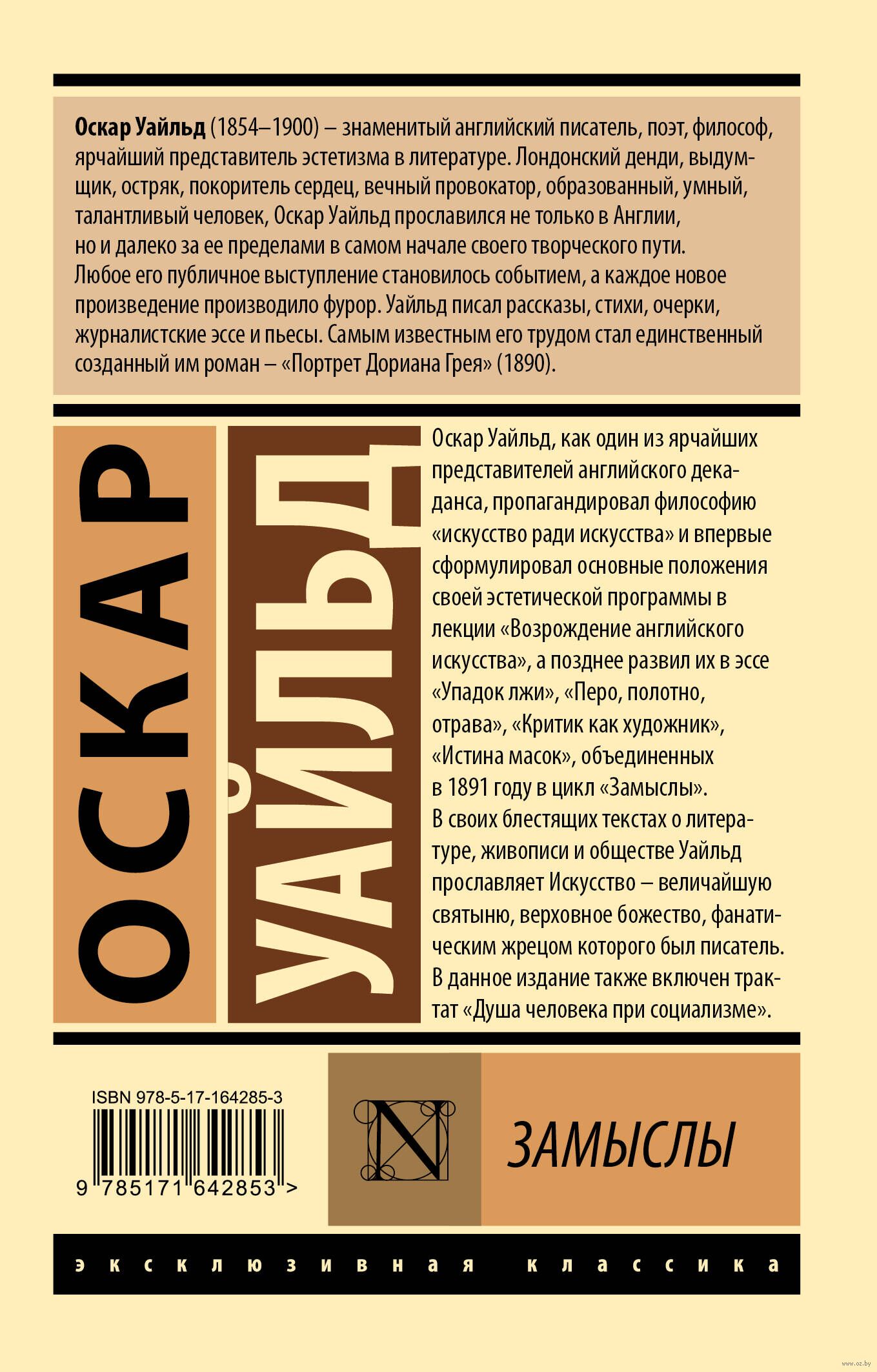 В своих блестящих текстах о литературе, живописи и обществе Уайльд прославляет Искусство – величайшую святыню, верховное божество, фанатическим жрецом которого был писатель. В данное издание также включен трактат "Душа человека при социализме".