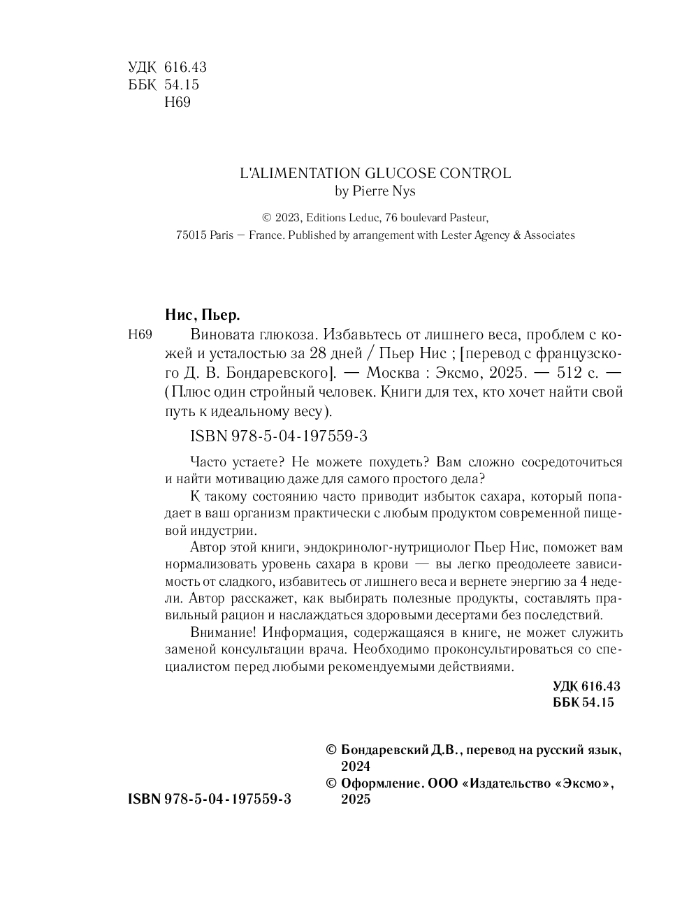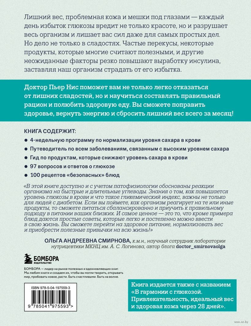 Автор этой книги эндокринолог-диетолог Пьер Нис поможет вам нормализовать уровень сахара в крови – вы легко преодолеете зависимость от сладкого, избавитесь от лишнего веса и вернете энергию за 4 недели. Автор расскажет, как выбирать полезные продукты, составлять правильный рацион и наслаждаться здоровыми десертами без последствий.