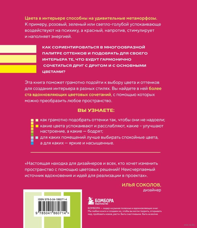 Эта книга поможет грамотно подойти к выбору цвета и оттенков для создания интерьера в разных стилях. Вы найдете в ней более ста вдохновляющих цветовых сочетаний, с помощью которых можно преобразить любое пространство.
