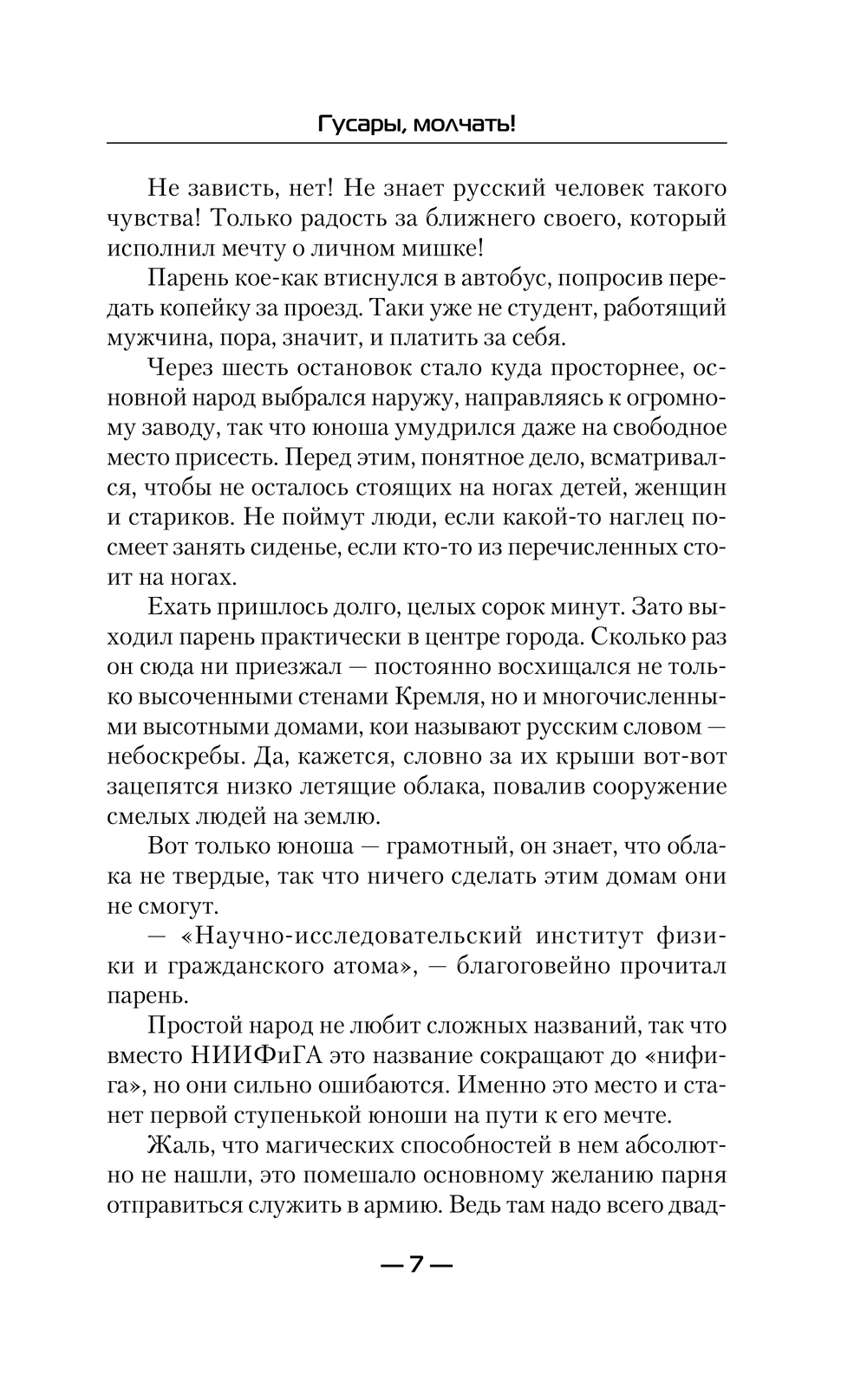 Ездовые боевые медведи, маленькие ядерные реакторы в каждом доме, суровый и неулыбчивый народ под контролем всевидящего ока Тайной стражи, высокая культура употребления алкоголя, только с балалайками что-то не заладилось. Такой предстала перед самым обычным попаданцем из нашего серого и скучного мира Российская империя 2007 года. Сможет ли болтливый парень удержаться и не обрушить на свою голову ворох проблем, возникающих из-за словесного недержания? Тем более если ты, простолюдин, из-за своих способностей к боевой магии оказался курсантом среди гусар из знатных дворянских семей. Если тебя жестко пытаются "поставить на место", то придется показать всё, на что ты способен.