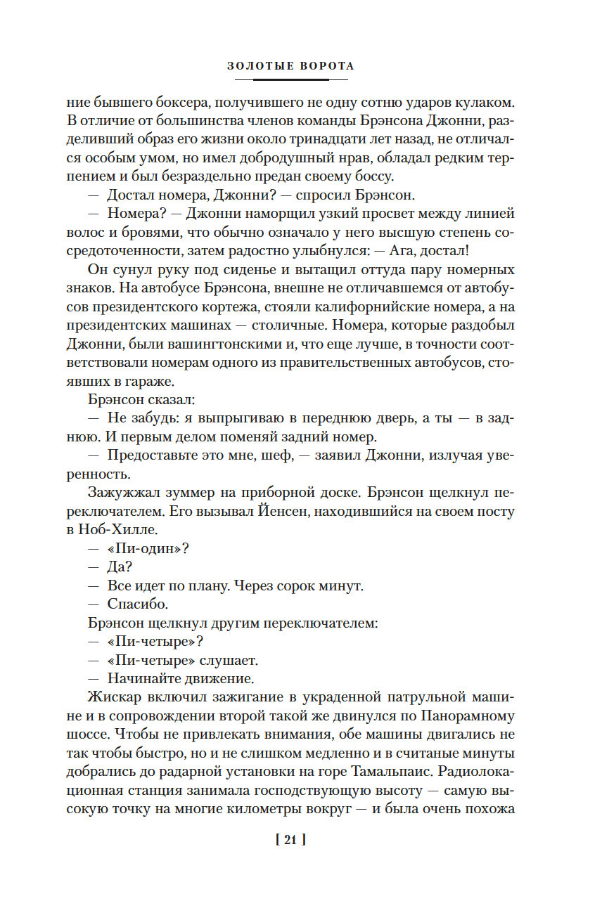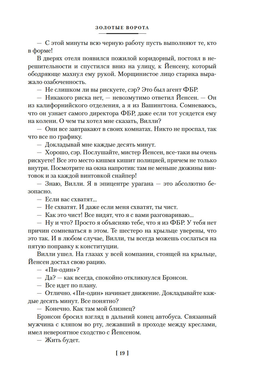Флагман этого сборника – роман "Золотые Ворота". Одноименный мост в Сан-Франциско, чудо инженерной мысли, считается неприступным, с точки зрения даже бдительных фэбээровцев. Особенно когда по нему проезжает президентский кортеж. Но для плохих парней, желающих сорвать банк, нет ничего невозможного...