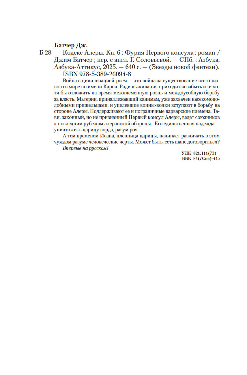 | Название в оригинале | Codex Alera. Book 6. First Lord Fury |