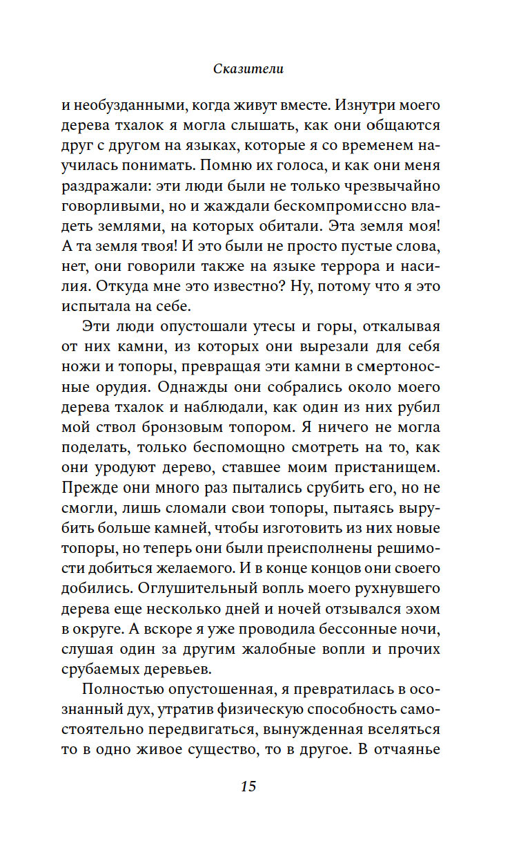 Сначала была земля. И в земле жил дух. И вот однажды воспарил он над поверхностью и вселился в дерево. Шли годы, земля раскалывалась и собиралась вновь, изгибаясь, меняя форму и имена. А дух был вечным и продолжал жить, сменяя смертные оболочки, в своем любопытстве наблюдая за становлением того мира, который мы знаем сегодня.