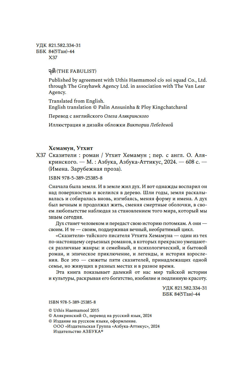 "Сказители" тайского писателя Утхита Хемамуна – один из тех по-настоящему серьезных романов, в которых прекрасно умещаются различные жанры: и семейный, и психологический, и бытовой роман, и эпическое приключение, и легенды, и история взросления. Все это – сюжеты пяти сказителей, принадлежащих одной семье, но живущих в разных местах и в разное время.