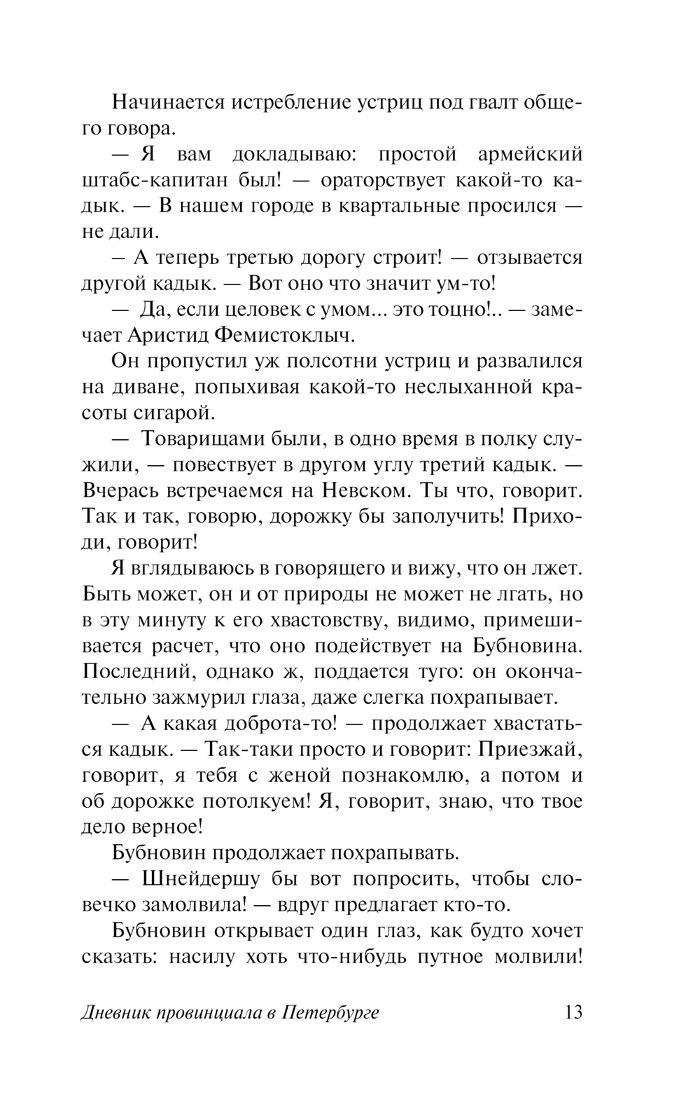 Сатирический "Дневник провинциала в Петербурге" в первую очередь обличал нравы, царящие в петербургском обществе семидесятых годов XIX века, но некоторые черты и особенности, которые подмечал Салтыков-Щедрин, не утратили своей актуальности и полтора века спустя.