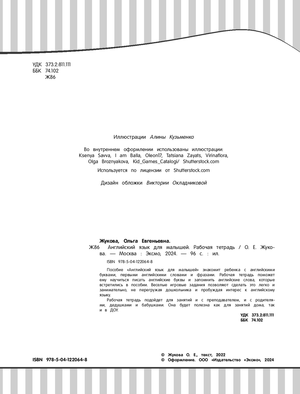 Приложение к развивающей книге для детей "Английский язык для малышей" Ольги Жуковой. Рабочая тетрадь по английскому для детей поможет научиться писать английские буквы и запомнить английские слова и фразы, которые встретились в пособии. Веселые игровые задания позволяют сделать это легко и занимательно, не перегружая ребенка и пробуждая интерес к иностранному языку.