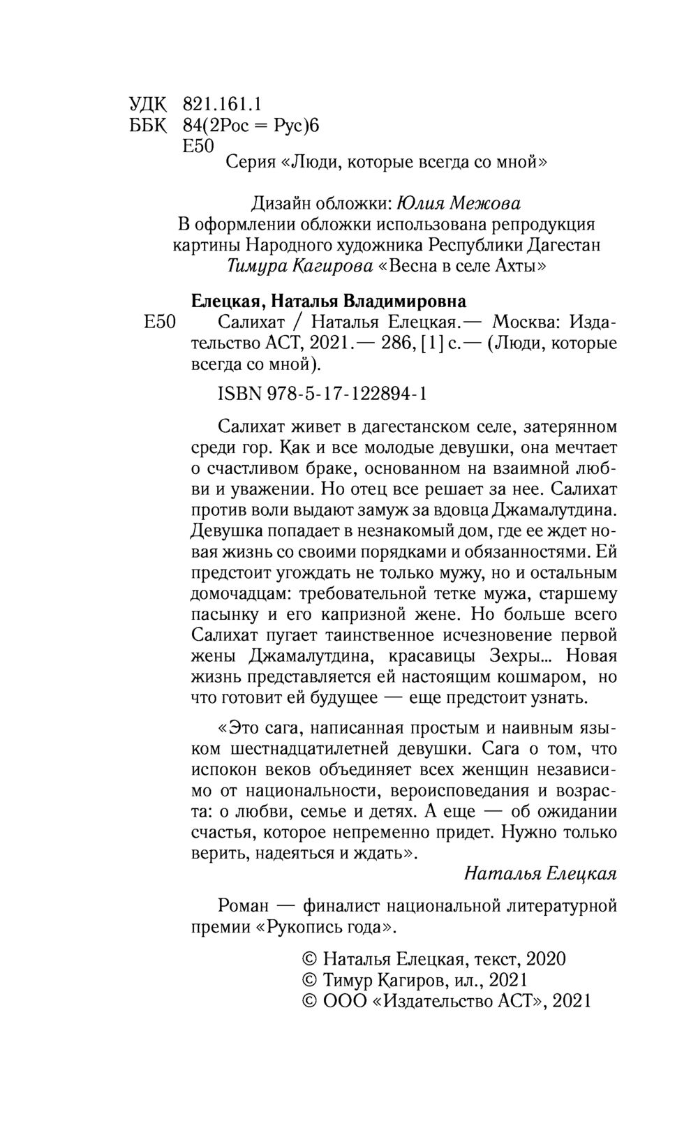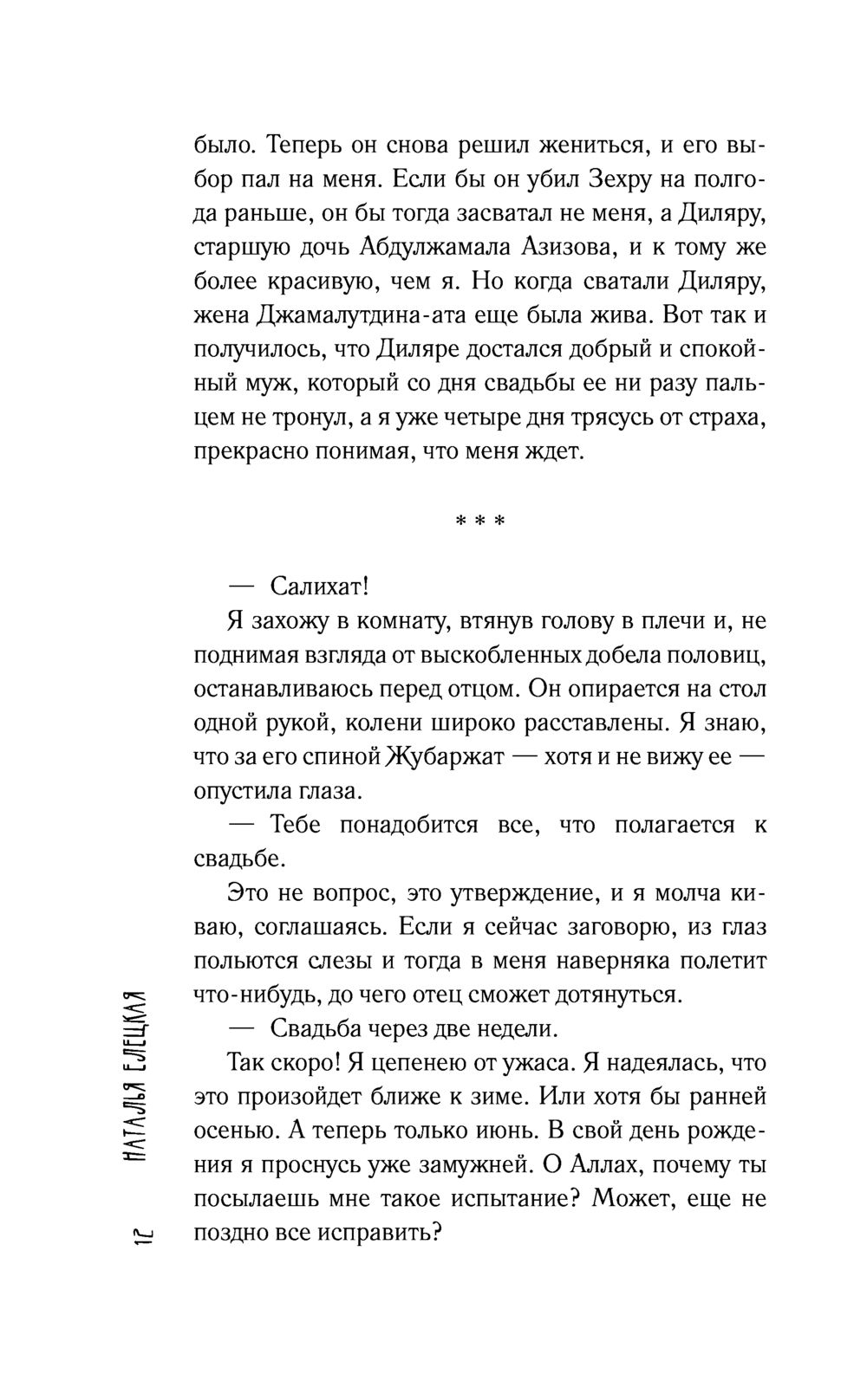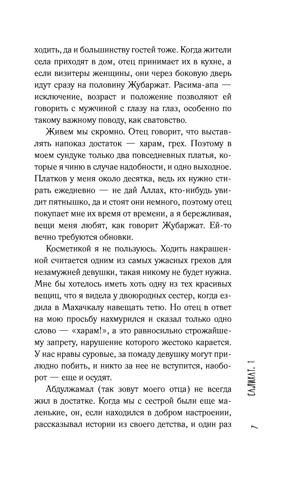 Салихат живет в дагестанском селе, затерянном среди гор. Как и все молодые девушки, она мечтает о счастливом браке, основанном на взаимной любви и уважении. Но отец все решает за нее. Салихат против воли выдают замуж за вдовца Джамалутдина. Девушка попадает в незнакомый дом, где ее ждет новая жизнь со своими порядками и обязанностями. Ей предстоит угождать не только мужу, но и остальным домочадцам: требовательной тетке мужа, старшему пасынку и его капризной жене. Но больше всего Салихат пугает таинственное исчезновение первой жены Джамалутдина, красавицы Зехры... Новая жизнь представляется ей настоящим кошмаром, но что готовит ей будущее – еще предстоит узнать.