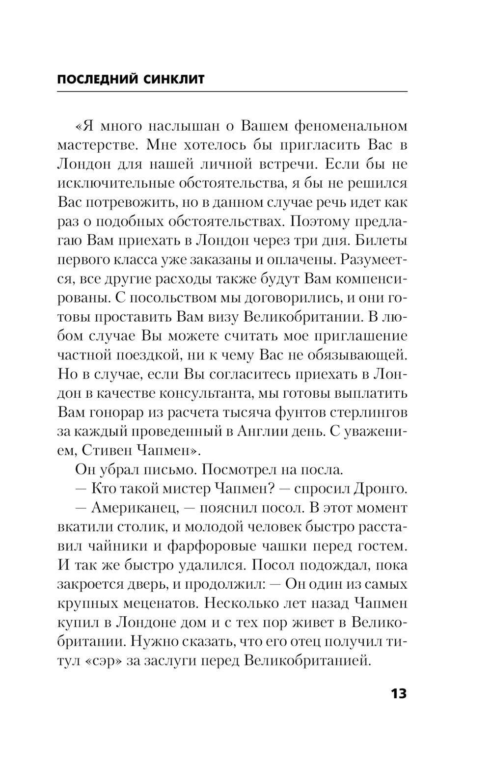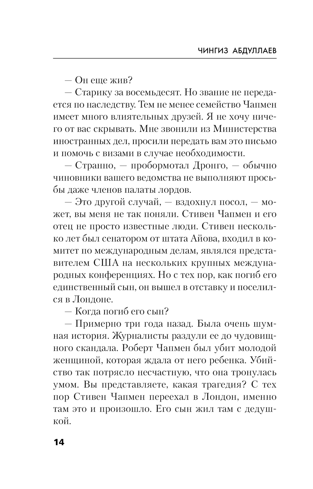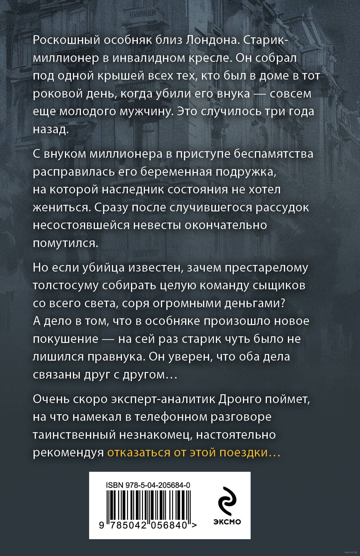 Роскошный особняк близ Лондона. Старик-миллионер в инвалидном кресле. Он собрал под одной крышей всех тех, кто был в доме в тот роковой день, когда убили его внука – совсем еще молодого мужчину. Это случилось три года назад. С внуком миллионера в приступе беспамятства расправилась его беременная подружка, на которой наследник состояния не хотел жениться. Сразу после случившегося рассудок несостоявшейся невесты окончательно помутился. Но если убийца известен, зачем престарелому толстосуму собирать целую команду сыщиков со всего света, соря огромными деньгами? А дело в том, что в особняке произошло новое покушение – на сей раз старик чуть было не лишился правнука. Он уверен, что оба дела связаны друг с другом... Очень скоро эксперт-аналитик Дронго поймет, на что намекал в телефонном разговоре таинственный незнакомец, настоятельно рекомендуя отказаться от этой поездки...