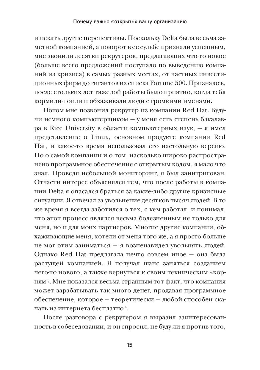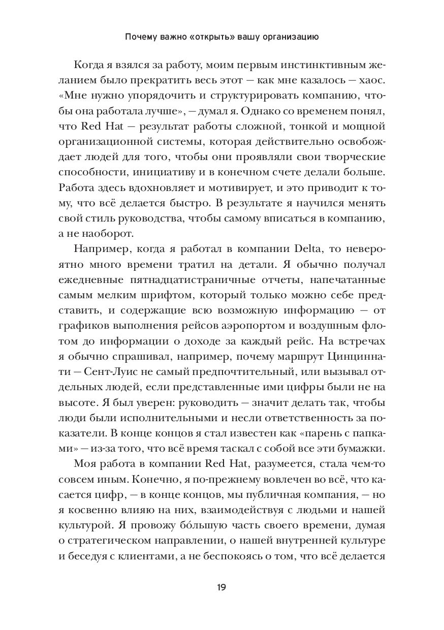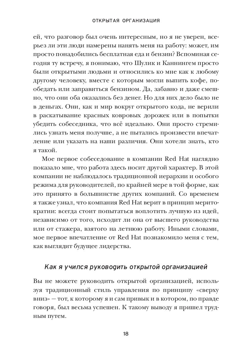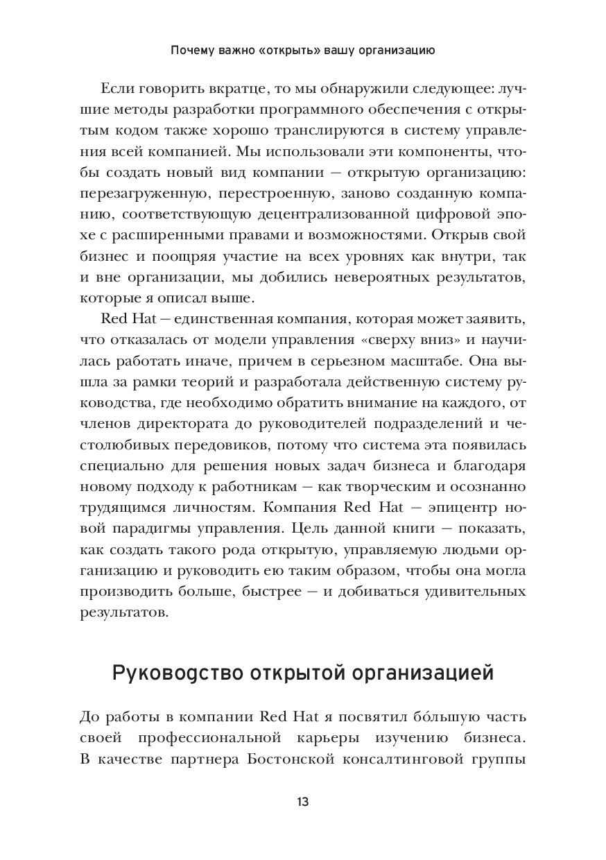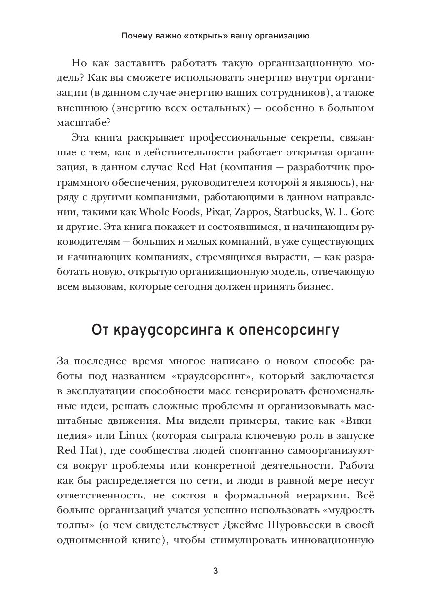 Джим Уайтхёрст – президент и генеральный директор Red Hat, крупнейшей в мире корпорации, выпускающей программное обеспечение с открытым исходным кодом, – делится секретами управления высокоэффективной компанией нового типа – "открытой организацией".