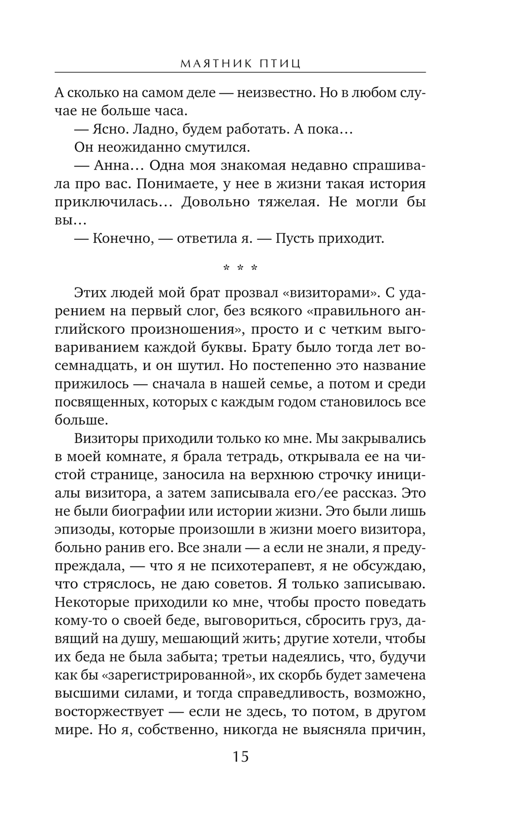 После смерти отца Анна вместе с братом создала "Феникс" – организацию, помогающую людям. Их клиенты – женщины, страдающие от мужей-абьюзеров, одинокие старики, неизлечимо больные и люди, потерявшие близких. Те, кто нуждается в участии. Люди в беде.