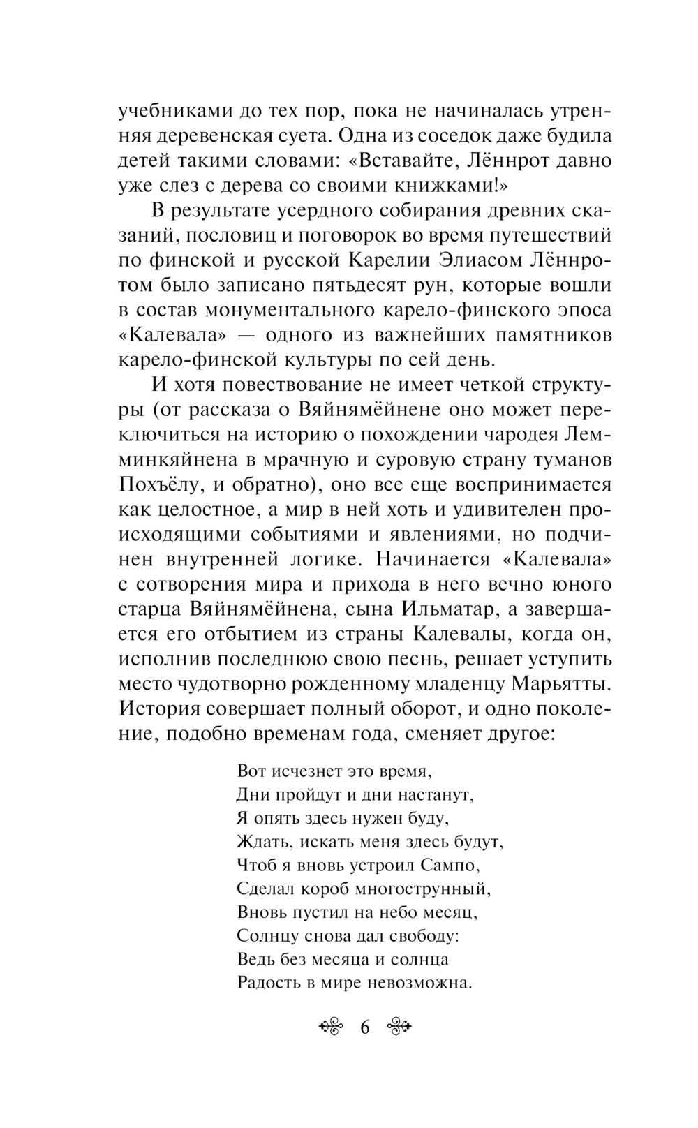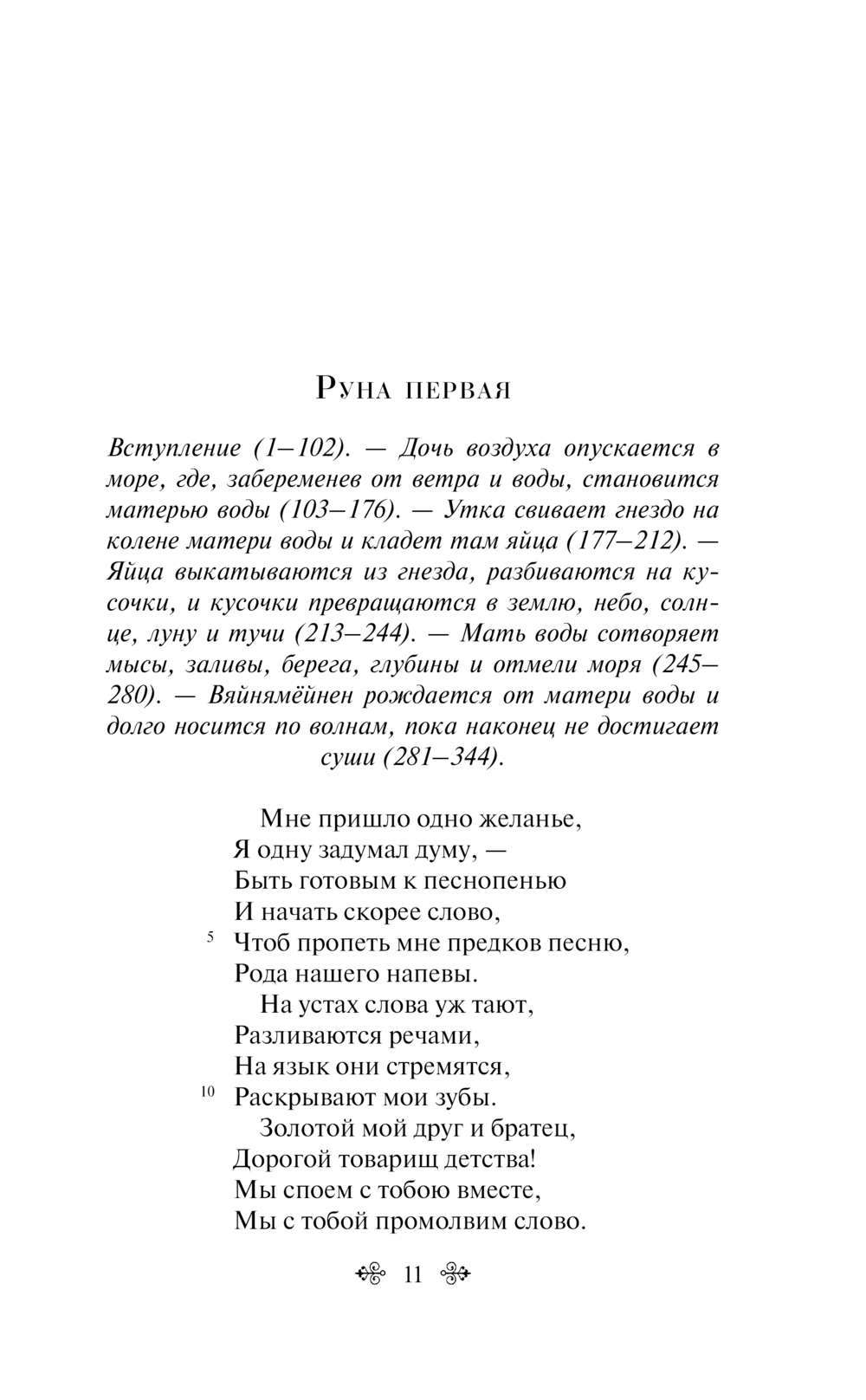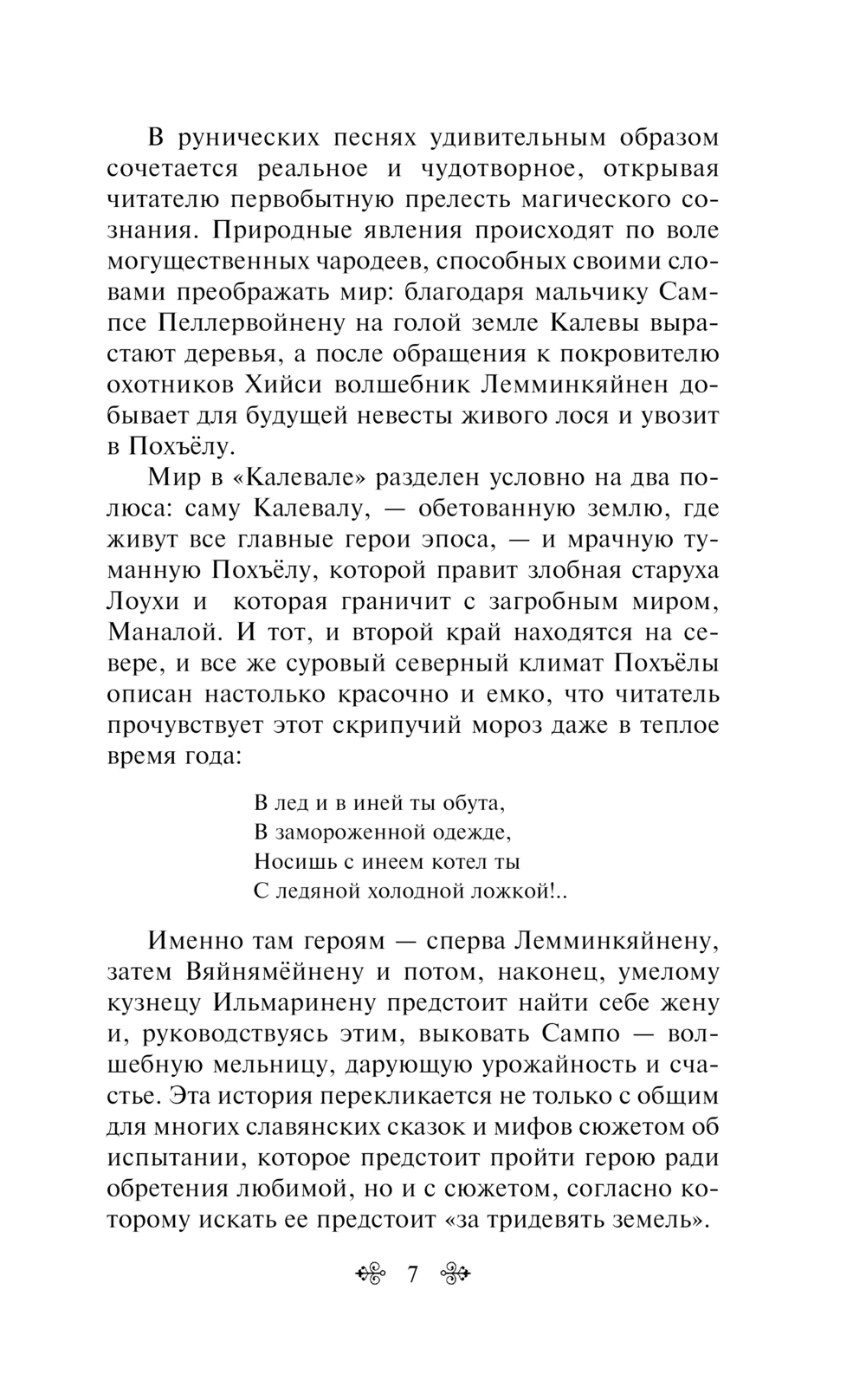 "Калевала" – это величественный эпос, созданный финским фольклористом Элиасом Лённротом (1802-1884) на основе карельских и финских народных песен. Книга состоит из пятидесяти рун, среди которых легенды о создании мира, о древних богоподобных героях и колдунах, о подвигах и свершениях.