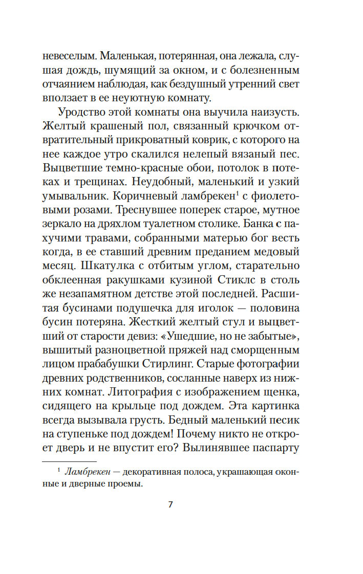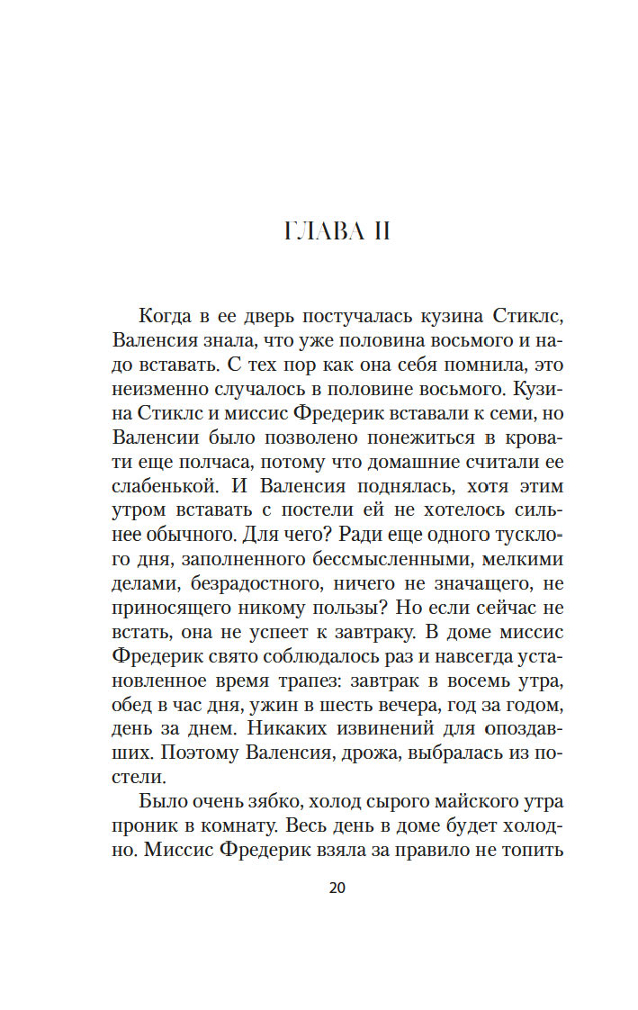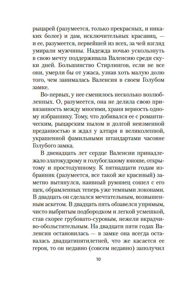 Канадская писательница Люси Мод Монтгомери (1874-1942) известна во всем мире как автор книг о девочке Анне из Зеленых Мезонинов. "Голубой замок" – первый и самый популярный роман Монтгомери для взрослого читателя, вдохновляющая история любви и преображения "безнадежной старой девы" Валенсии Стирлинг, ведущей скучное существование в окружении надоедливой родни. В двадцать девять лет Валенсия узнает, что жить ей осталось не больше года, и принимает решение вырваться из плена однообразных будней навстречу неведомой судьбе. Вскоре она понимает, что волшебный Голубой замок, о котором она так часто мечтала, оставаясь в одиночестве, существует на самом деле...