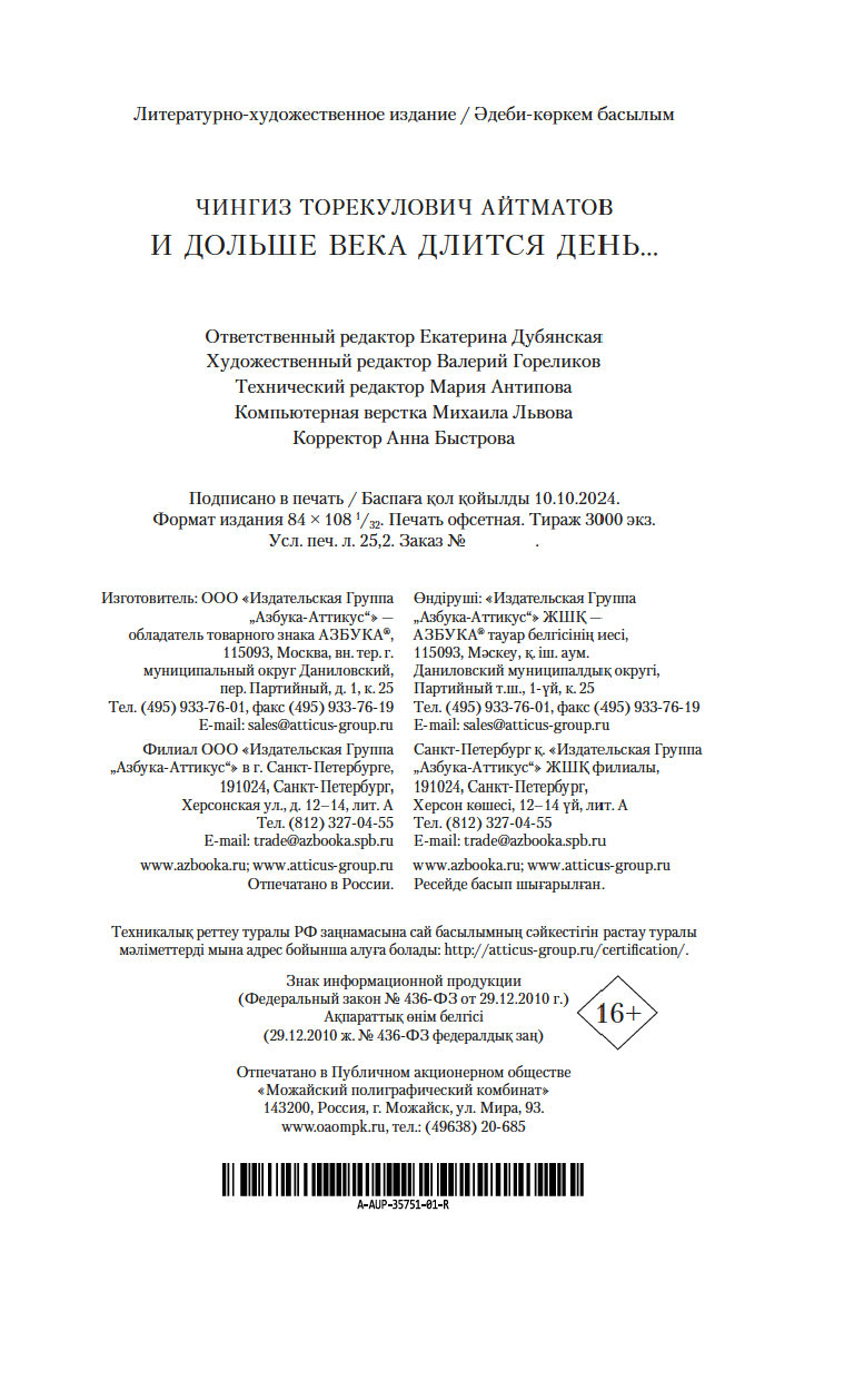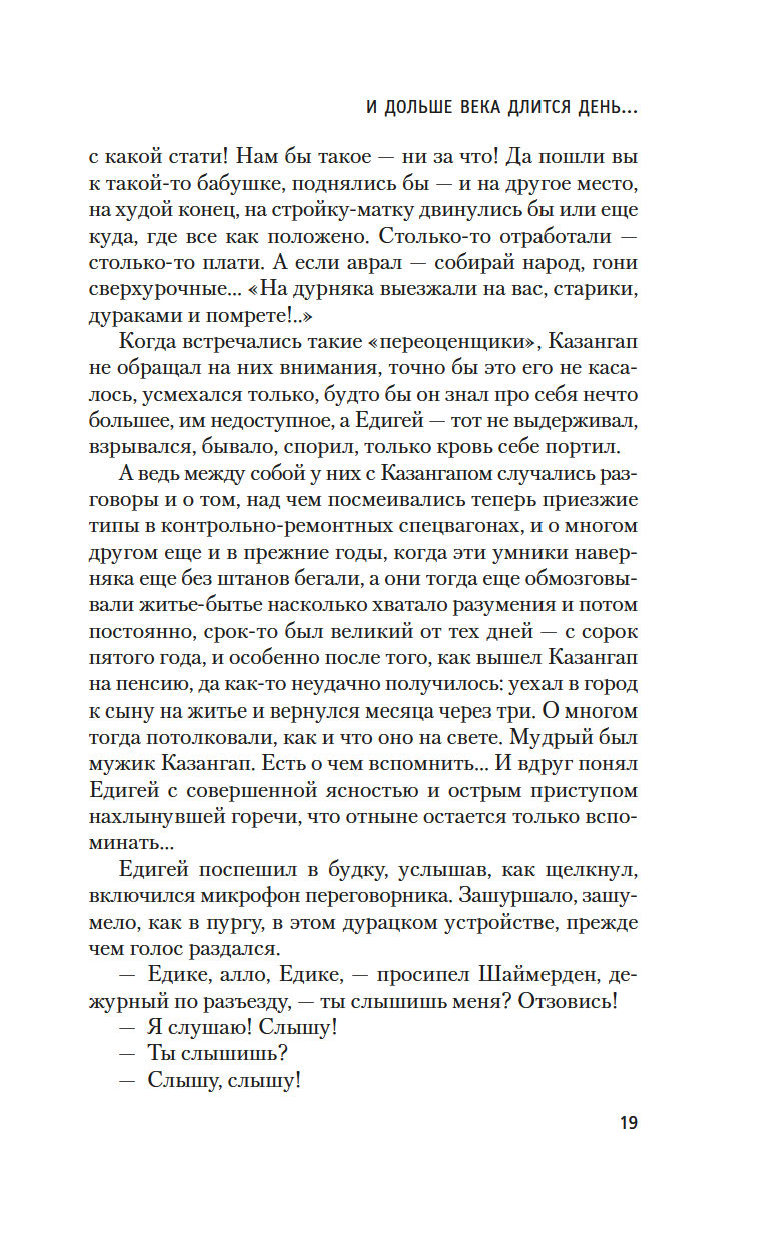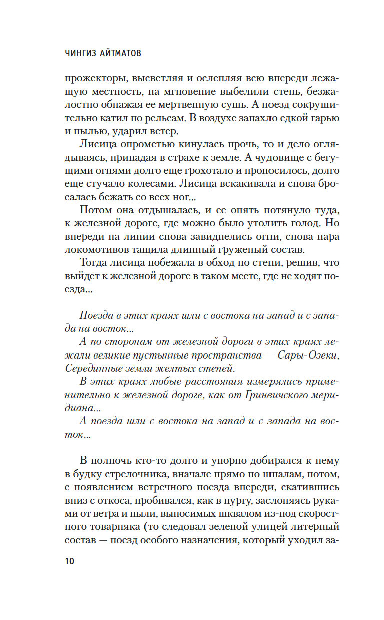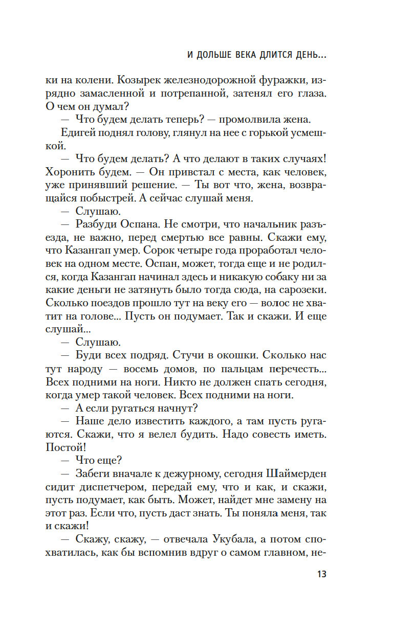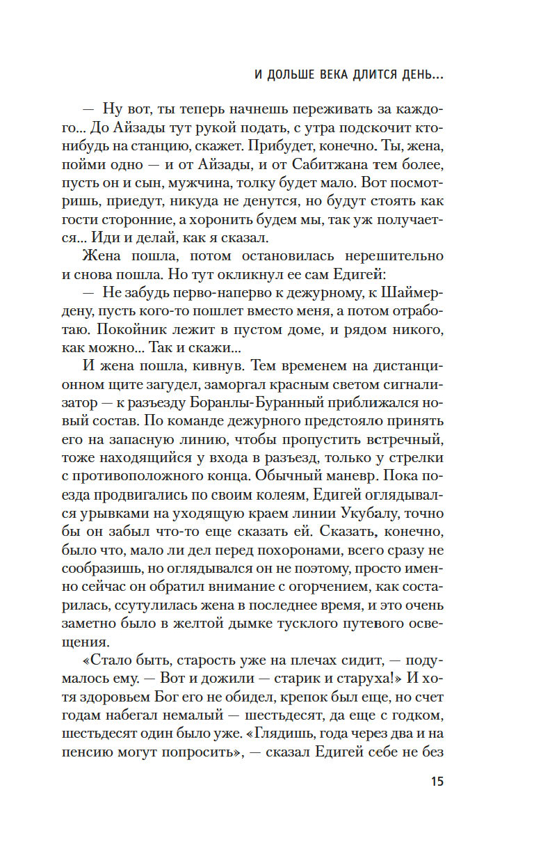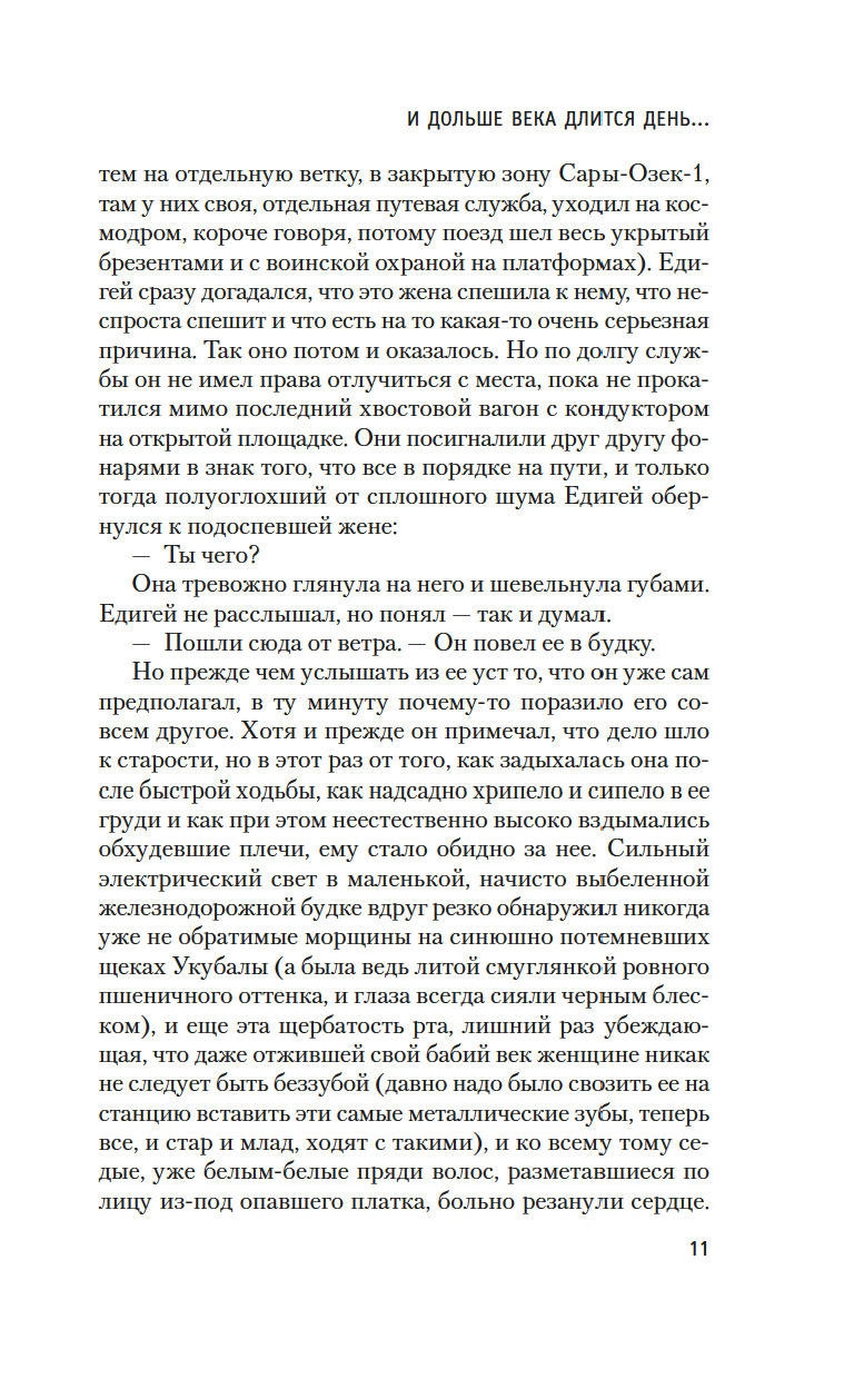 Проза Чингиза Айтматова – это взывающий к совести голос вечных истин, к которым всегда тянется, но которым не всегда следует человечество. Классик русской и киргизской литературы, чье творчество не раз было отмечено премиями и наградами, Айтматов обрел признание современников еще до выхода первого романа – его полюбили за повести-притчи "Белый пароход", "Пегий пес, бегущий краем моря", "Прощай, Гульсары!". Но публикация романа "И дольше века длится день.." (другое название – "Буранный полустанок", 1980) произвела фурор среди читающей публики. Стилистически близкий к магическому реализму, роман погружает читателя одновременно и в нелегкие времена "построения социализма", и в древние мифы, и в фантастическое будущее, обещающее встречу с инопланетным разумом.