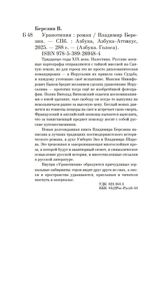 Новая долгожданная книга Владимира Березина написана в лучших традициях постмодернистского исторического романа, в духе Умберто Эко и Владимира Шарова. Это тревожная и завораживающая многослойная проза, в которой будут и авантюрный сюжет, и символическое осмысление русской истории, и многочисленные отсылки к русской литературе.