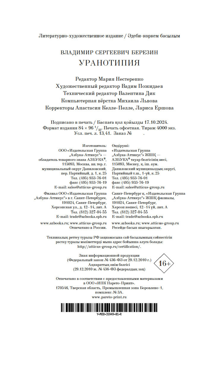 | Изготовитель | ЗАО "Азбука". 198096, РФ, г. Санкт-Петербург, ул. Решетникова, д. 15 |