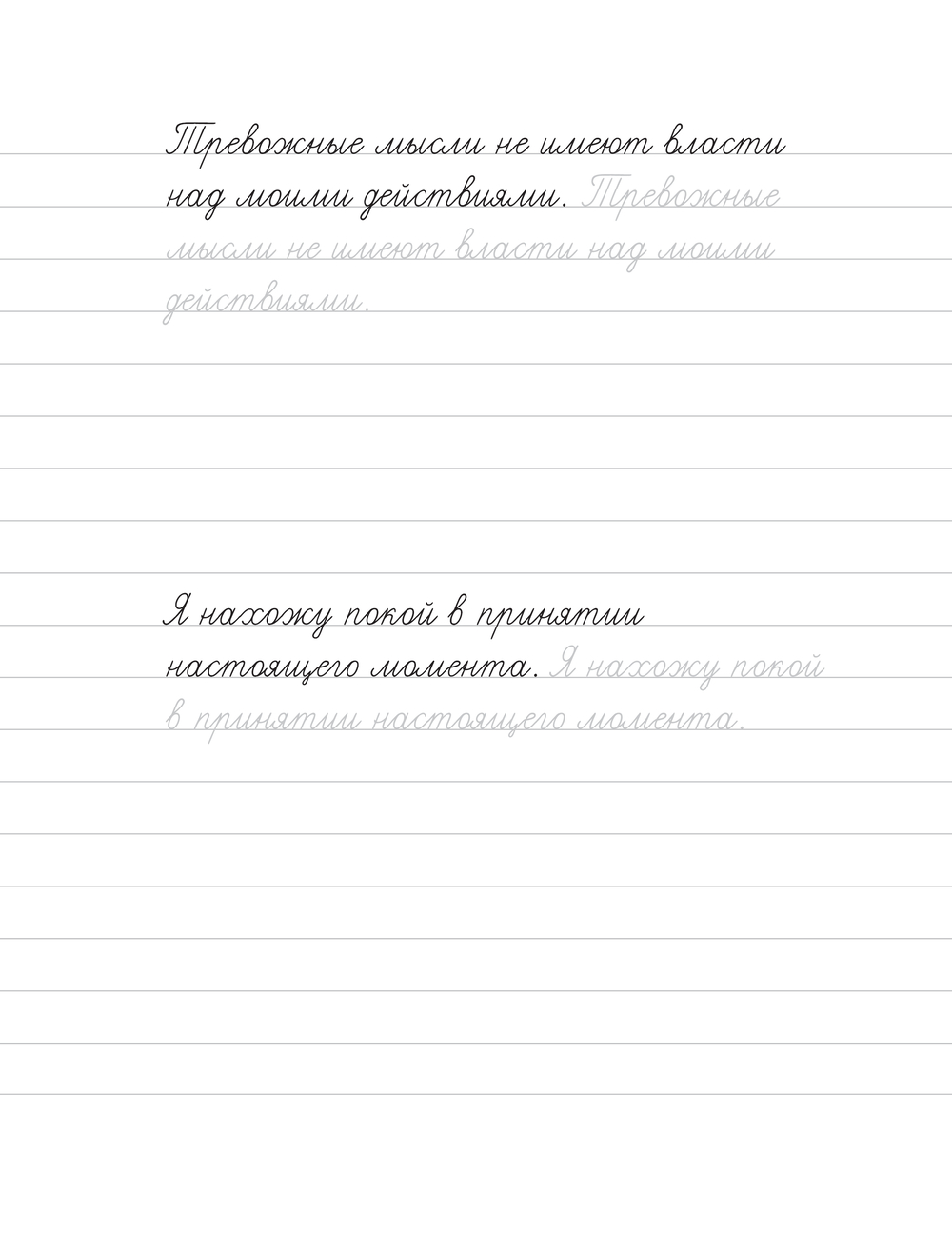 Тетрадь разработана специально для борьбы с тревогой. Прописи серии "Антистресс-каллиграфия" подходят для всех, кто хочет восстановить навык письма от руки.
