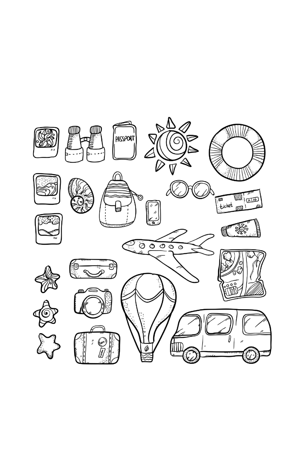 Грандиозный отпуск. Раскраска на поиск предметов