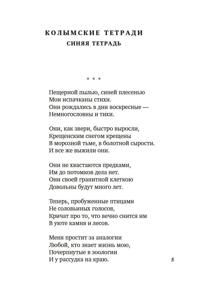 Имя Варлама Шаламова известно читателям, прежде всего, благодаря "Колымским рассказам". Шаламовская проза, беспощадное и точное свидетельство о ГУЛАГе, занимает одну из самых значимых страниц в истории русской литературы ХХ века. Между тем, сам Шаламов считал себя более поэтом, чем прозаиком. Оставаясь в тени лагерных рассказов, поэтические произведения Шаламова составляют весомую часть его творческого наследия. По признанию автора, поэзия была для него "спасительным оберегом" и источником силы в бесчеловечных условиях лагерной жизни, его "путеводной звездой". Погружаясь в мировую культуру и историю, обращая взгляд к природе, Шаламов пишет свой "лирический дневник", стихи, которые одновременно "ясны и непостижимы". В настоящее издание вошли поэтические произведения, составившие цикл "Колымские тетради" (1949-1953), созданные на Дальнем Севере, а также избранные стихотворения, написанные в разные годы после возвращения из лагеря.