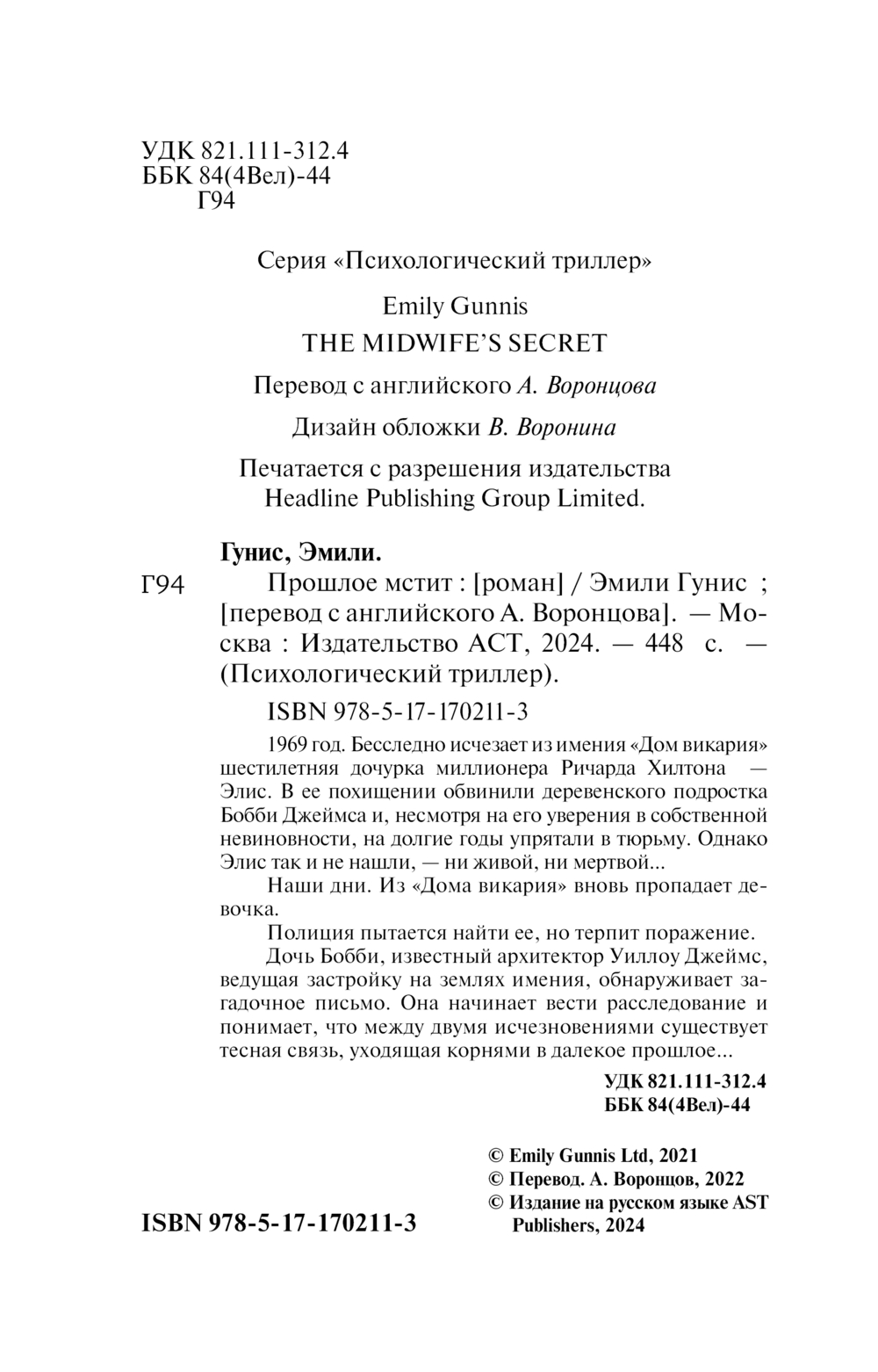 1969 год. Бесследно исчезает из имения "Дом викария" шестилетняя дочурка миллионера Ричарда Хилтона – Элис. В ее похищении обвинили деревенского подростка Бобби Джеймса и, несмотря на его уверения в собственной невиновности, на долгие годы упрятали в тюрьму. Однако Элис так и не нашли, – ни живой, ни мертвой...