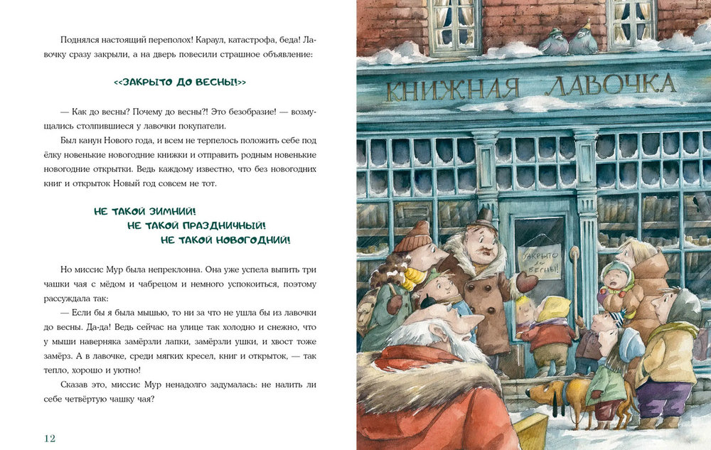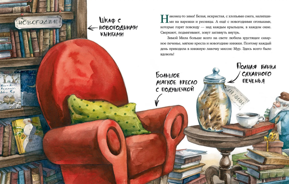 Мила очень любит проводить время в книжной лавочке миссис Мур. Но однажды, накануне Нового года здесь с самого утра что-то пошло не так. На книжной полке хозяйка обнаружила крошечные следы. Поднялся настоящий переполох! Как же избавиться от мышки? Закрыть магазинчик до весны или поставить мышеловку? И тут у Милы появляется замечательная идея!