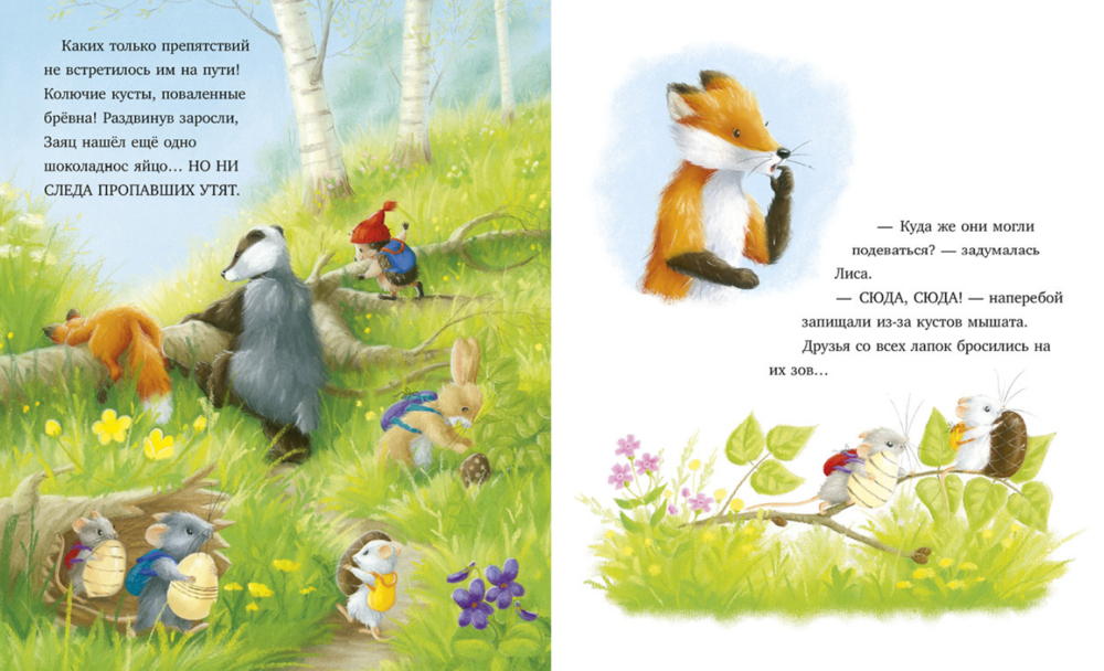 Как хорошо в лесу в солнечный весенний день! Ежулька вместе с друзьями отправился на прогулку: любоваться распустившимися цветами и искать шоколадные яйца, которые спрятала в траве мама-Мышка. Но не для всех в лесу этот день оказался чудесным... Маленькие утята сбежали от мамы и потерялись! Конечно, добрые и отважные друзья сразу же решили прийти на помощь и поискать пропавших малышей!