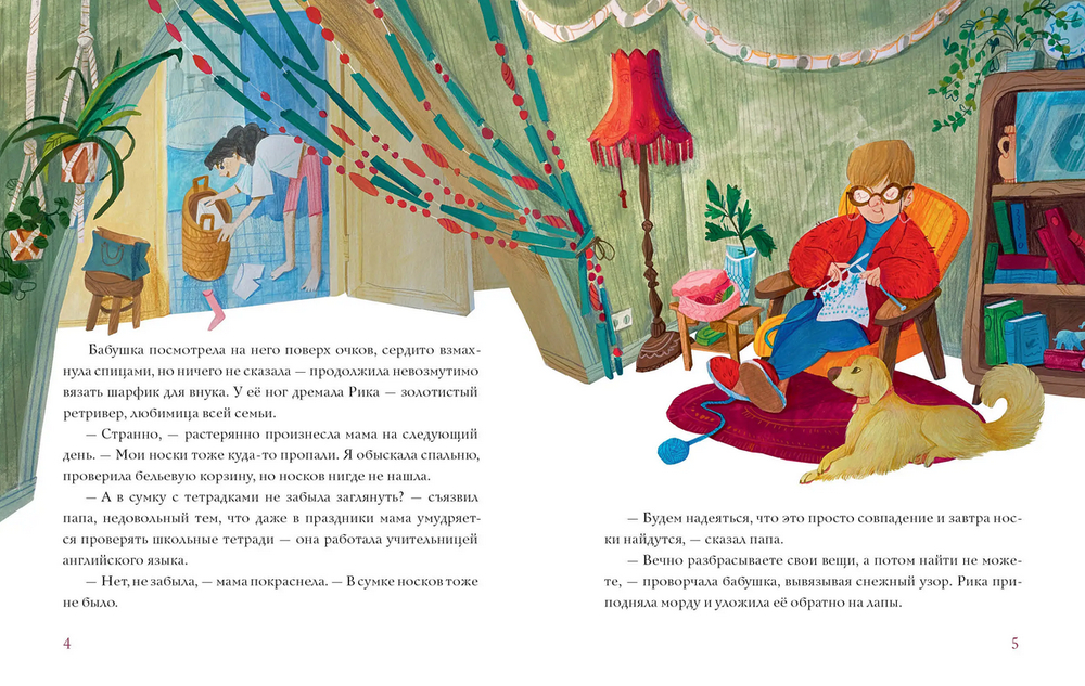 В одной дружной семье стали пропадать тёплые вязаные носки. Причём у всех поочерёдно – а потом исчезли и бабушкины клубки шерстяных ниток. Словно в доме завёлся таинственный зверь Носкотыр! Чего только не делали, чтобы Носкотыра отвадить, – мазали носки горчицей, посыпали перцем, даже хотели пустить по следу чудовища любимую собаку Рику. Но Рика и не подумала выслеживать воришку. Тогда на семейном совете было решено поймать хитрого зверя.