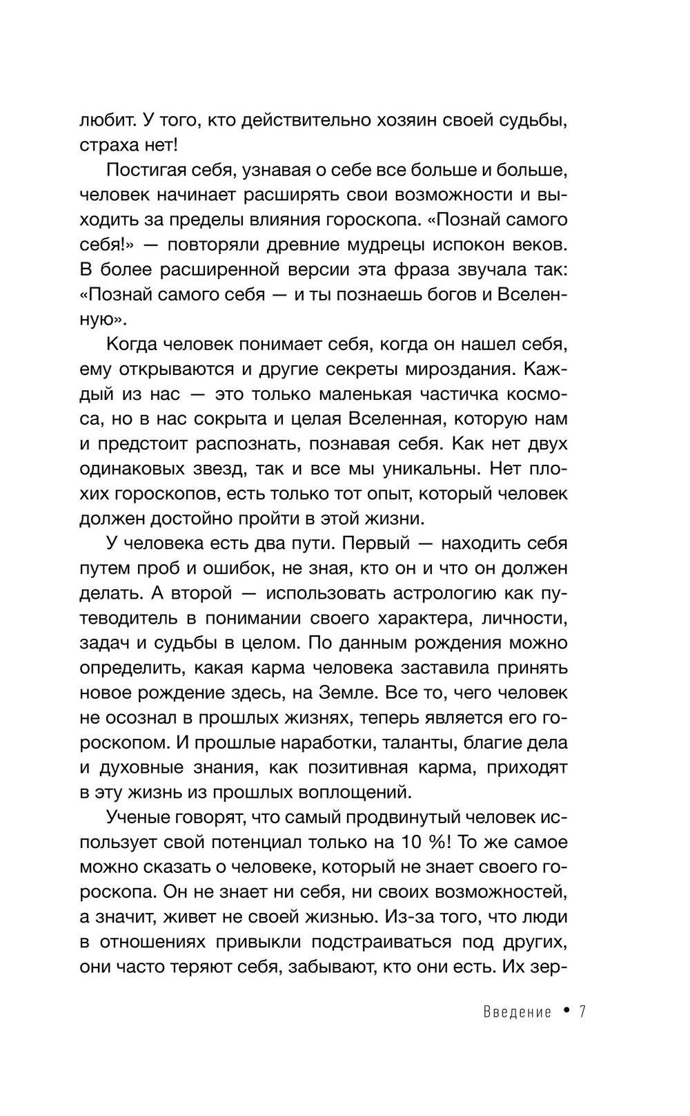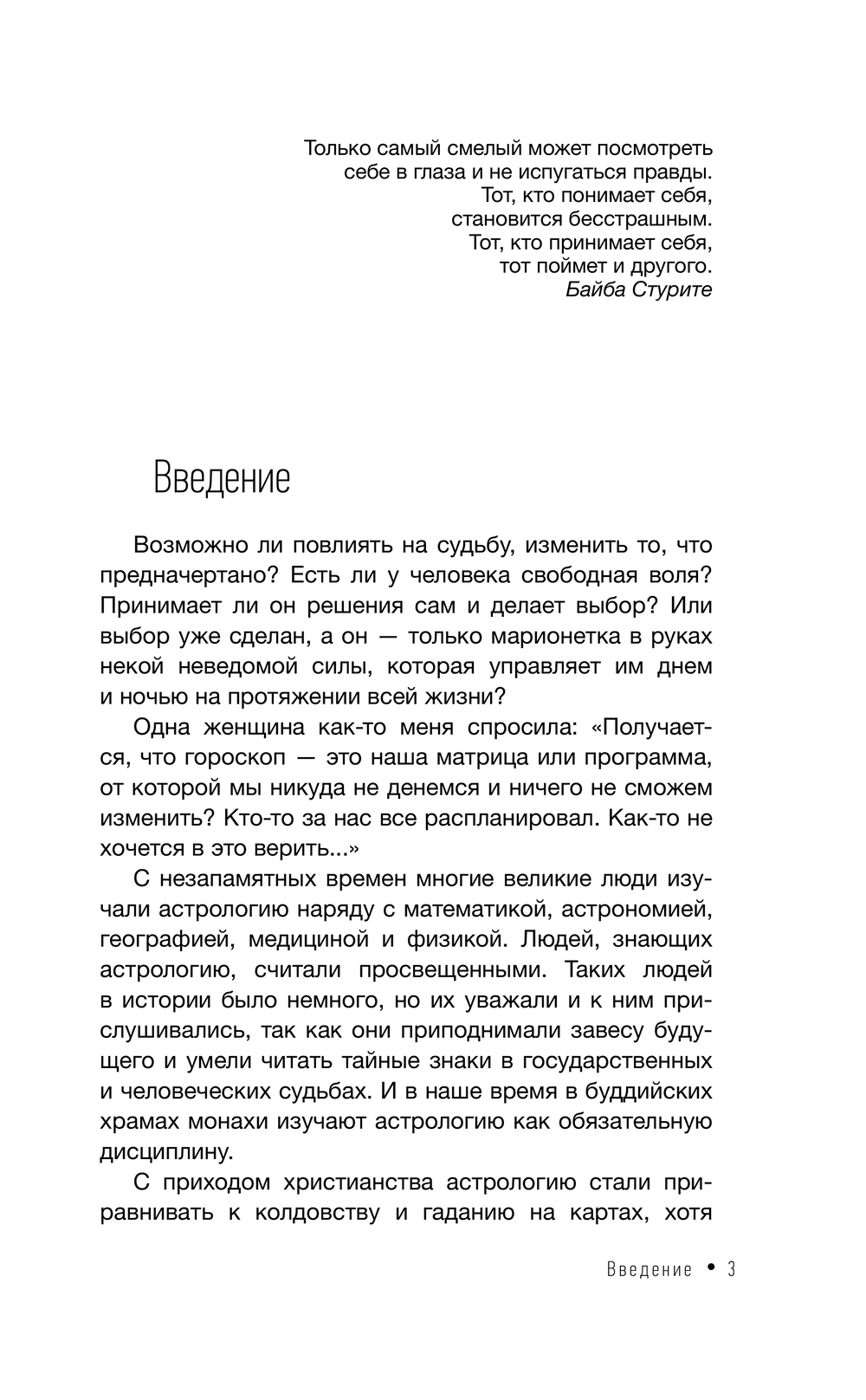 Очень сложно принять тот факт, что планеты влияют на нашу судьбу. Но это влияние существует независимо от того, верит ли сам человек в него или нет. У нас есть выбор: идти вслепую, полагая, что мы найдем выход из жизненных лабиринтов и методом проб и ошибок выйдем на ровную поверхность, или взять в руки проверенный веками компас – гороскоп. Он определяет черты характера, профессию, здоровье, таланты, благополучие, личную жизнь... Знание собственного гороскопа абсолютно не ограничивает нашу жизнь! Ведь постигая себя, узнавая все больше и больше, мы начинаем расширять свои возможности и выходить за пределы влияния гороскопа.
