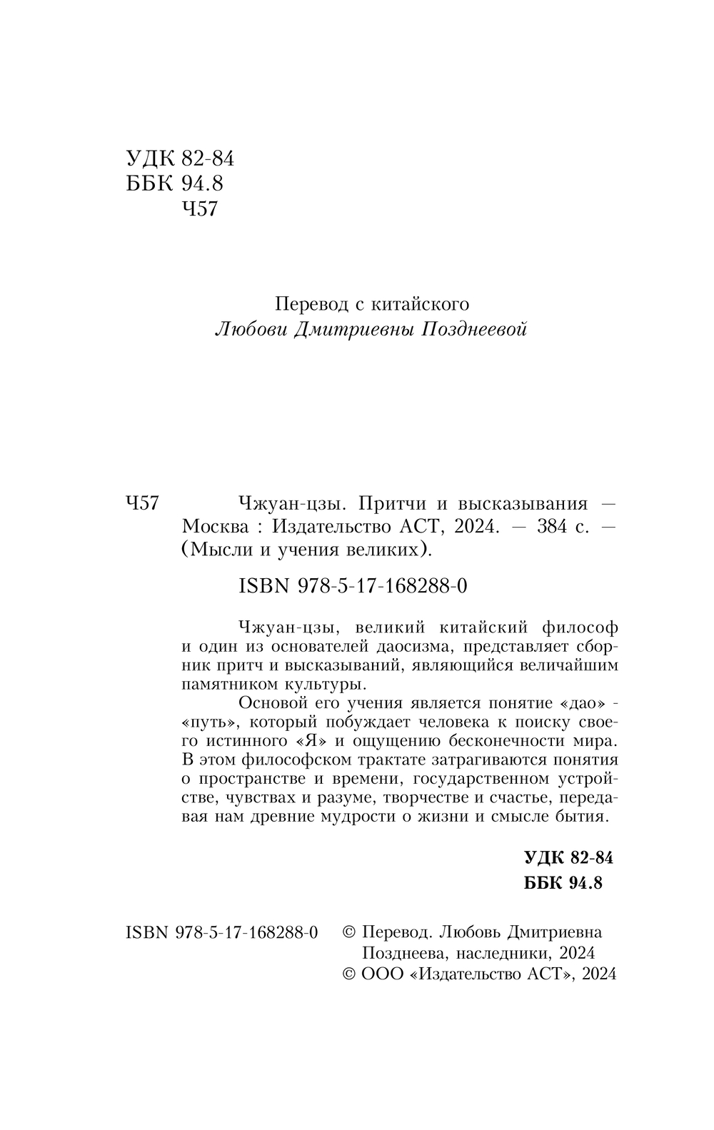 Чжуан-цзы, великий китайский философ и один из основателей даосизма, представляет сборник притч и высказываний, являющийся величайшим памятником культуры.